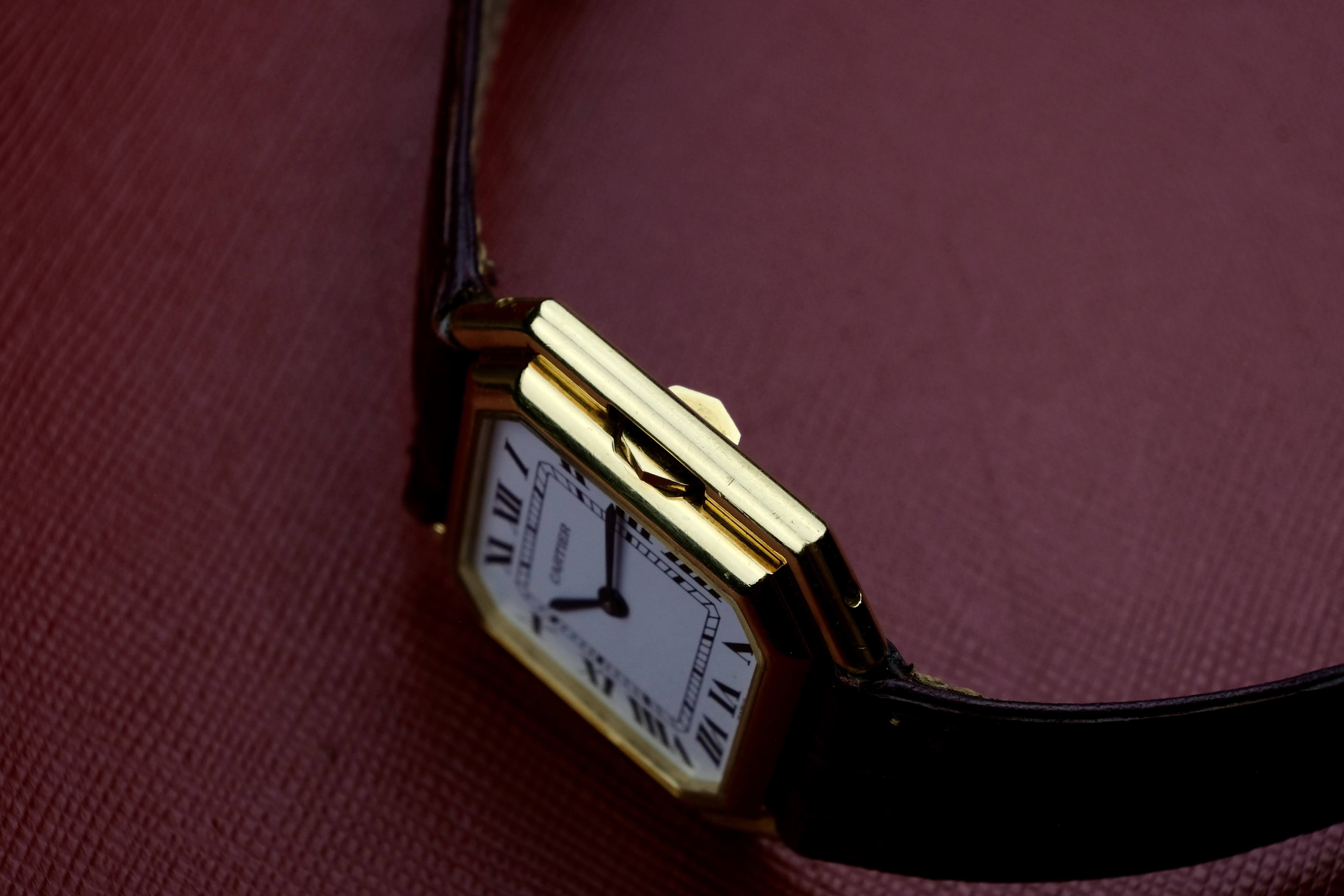 The 17001 is one of my most loved post merger Cartier references. Why? With 30mm the size is just right, it carries an automatic movement and the Ceinture is just a pretty rare and not too know reference that attracts attention by its edgy, square and stepped case. You can tell the level of polish by the back of a 17001: The polished part should have a flat surface in which you should be able to see your face and the edges towards the front should be sharp and clean, meanwhile the bubble should carry sharp hallmarks and engravings. I bought the watch from the previous owner who got it from his dad and based on his words the watch is untouched, which is very rare for a Ceinture. All in all, finding a Ceinture in this condition is very hard and will be even harder in the future.