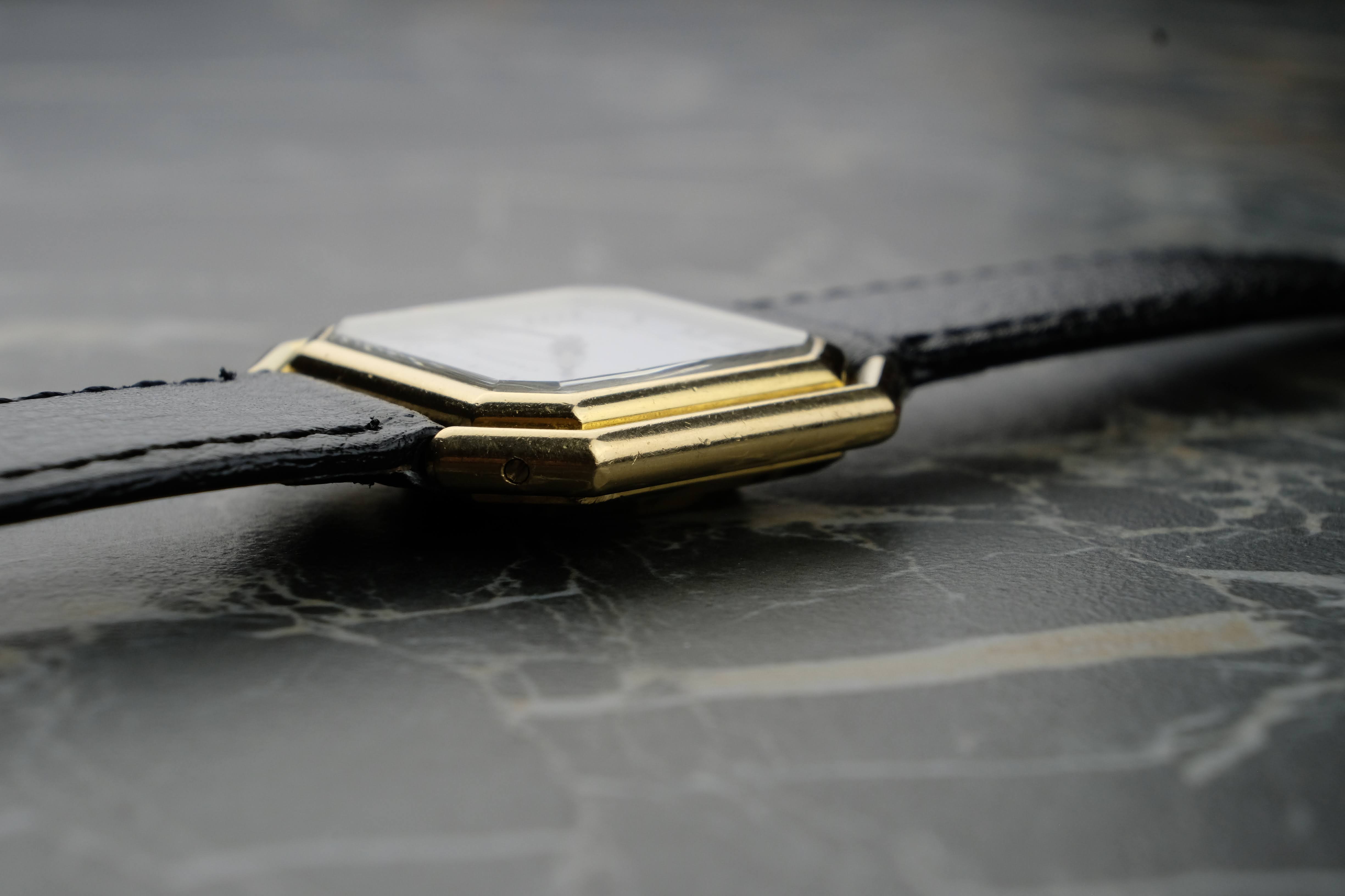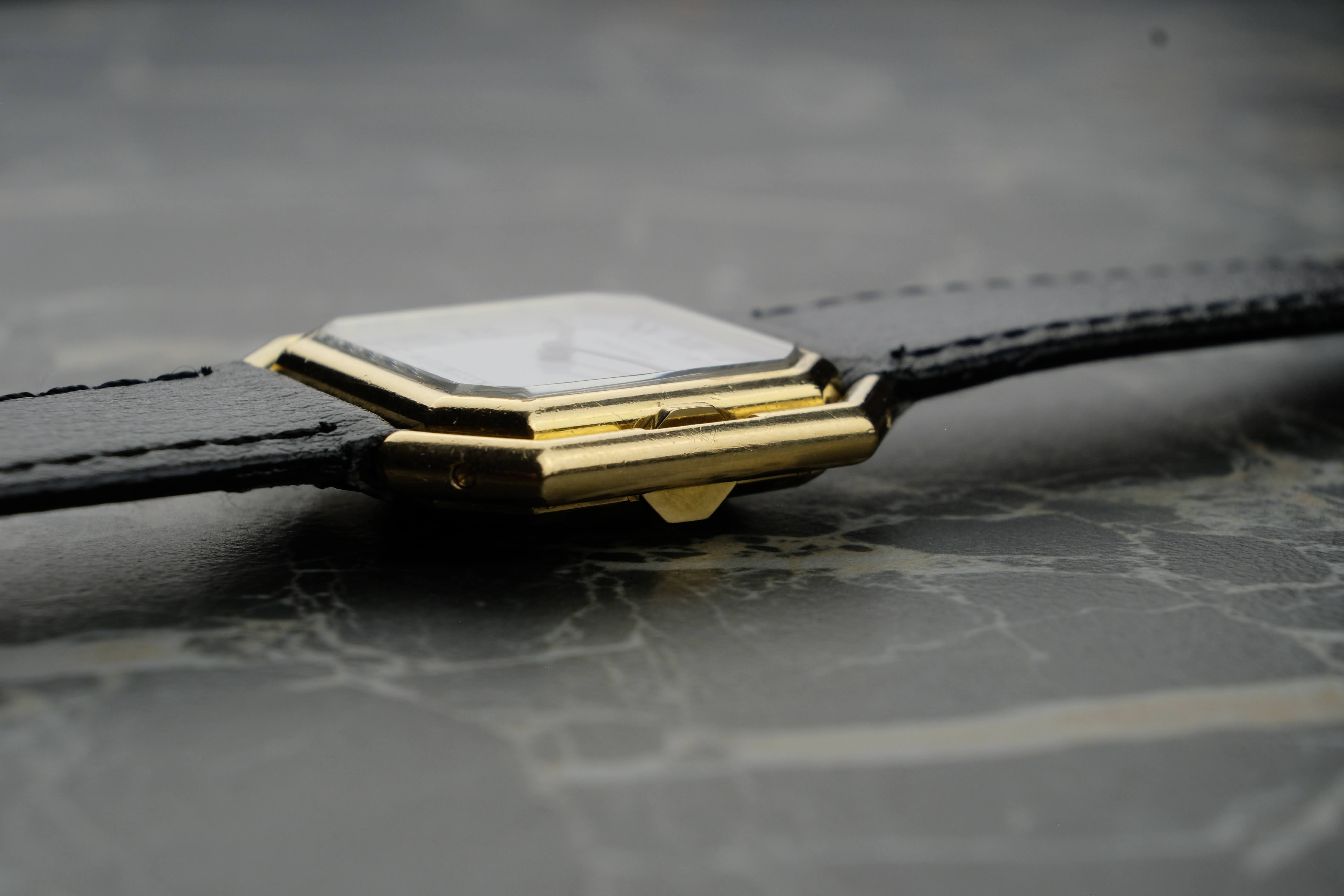 The 17001 is one of my most loved post merger Cartier references. Why? With 30mm the size is just right, it carries an automatic movement and the Ceinture is just a pretty rare and not too know reference that attracts attention by its edgy, square and stepped case. Here we have a nice example in good conditions, a clean dial and freshly serviced.