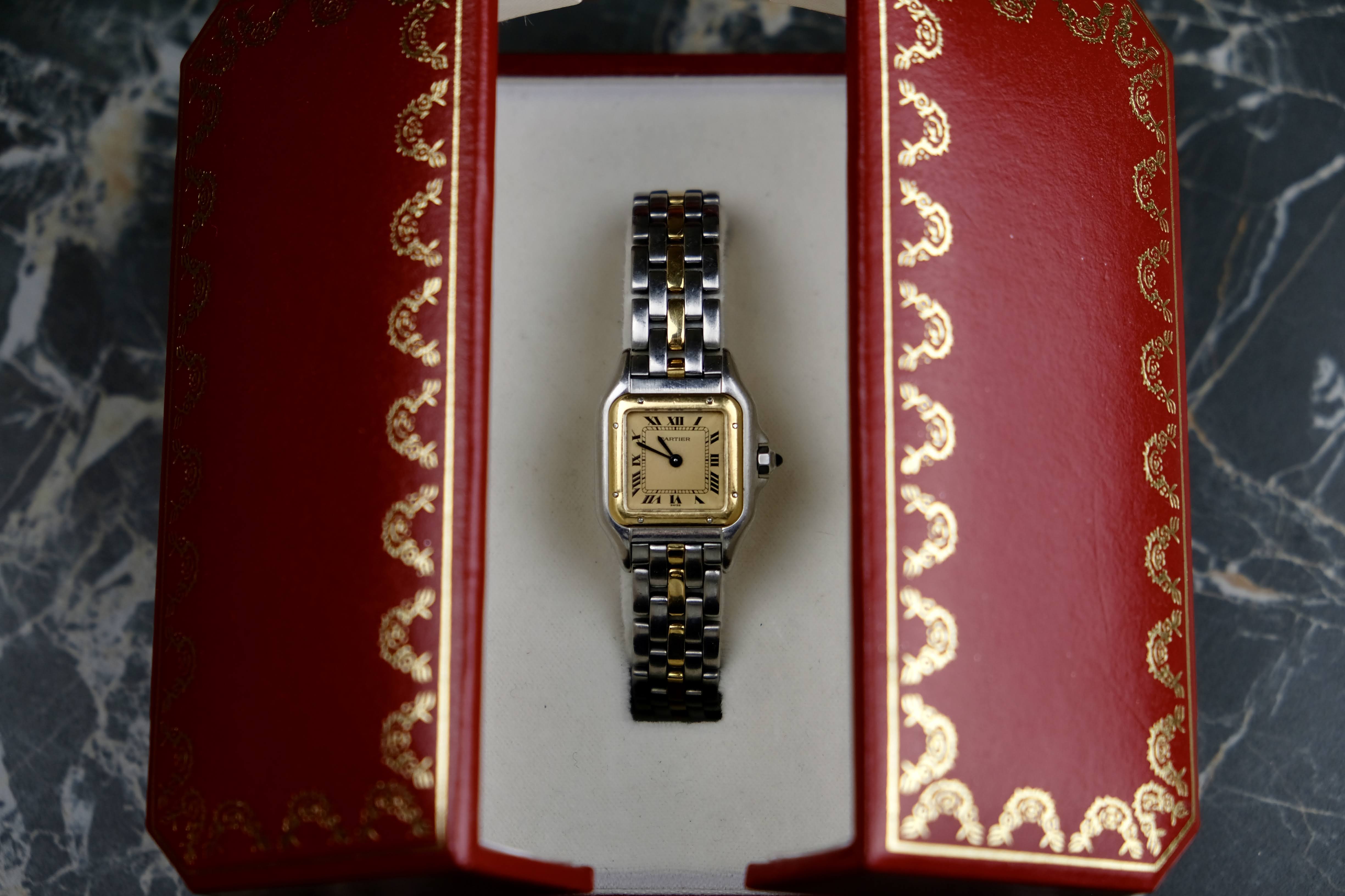 Here we have a lovely small sized ladies Panthere, which in my eyes is the nicest size for most ladies wrists. What I love about this particular example is the dial that has turned into a rich cream color tone making it a special piece!