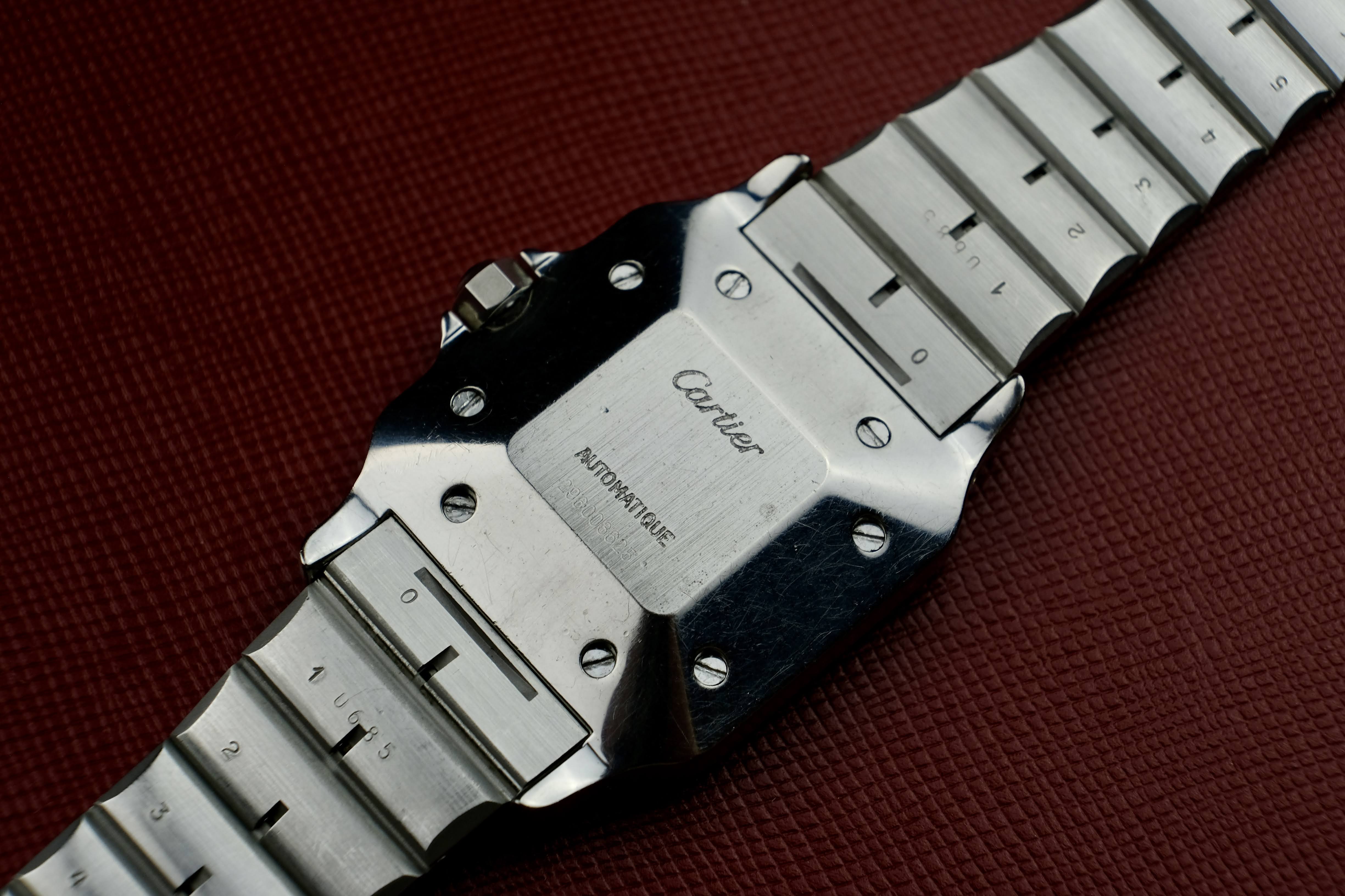 Here we have a good preserved but worn Cartier Santos Carrée 2960 in the popular Ghost configuration.