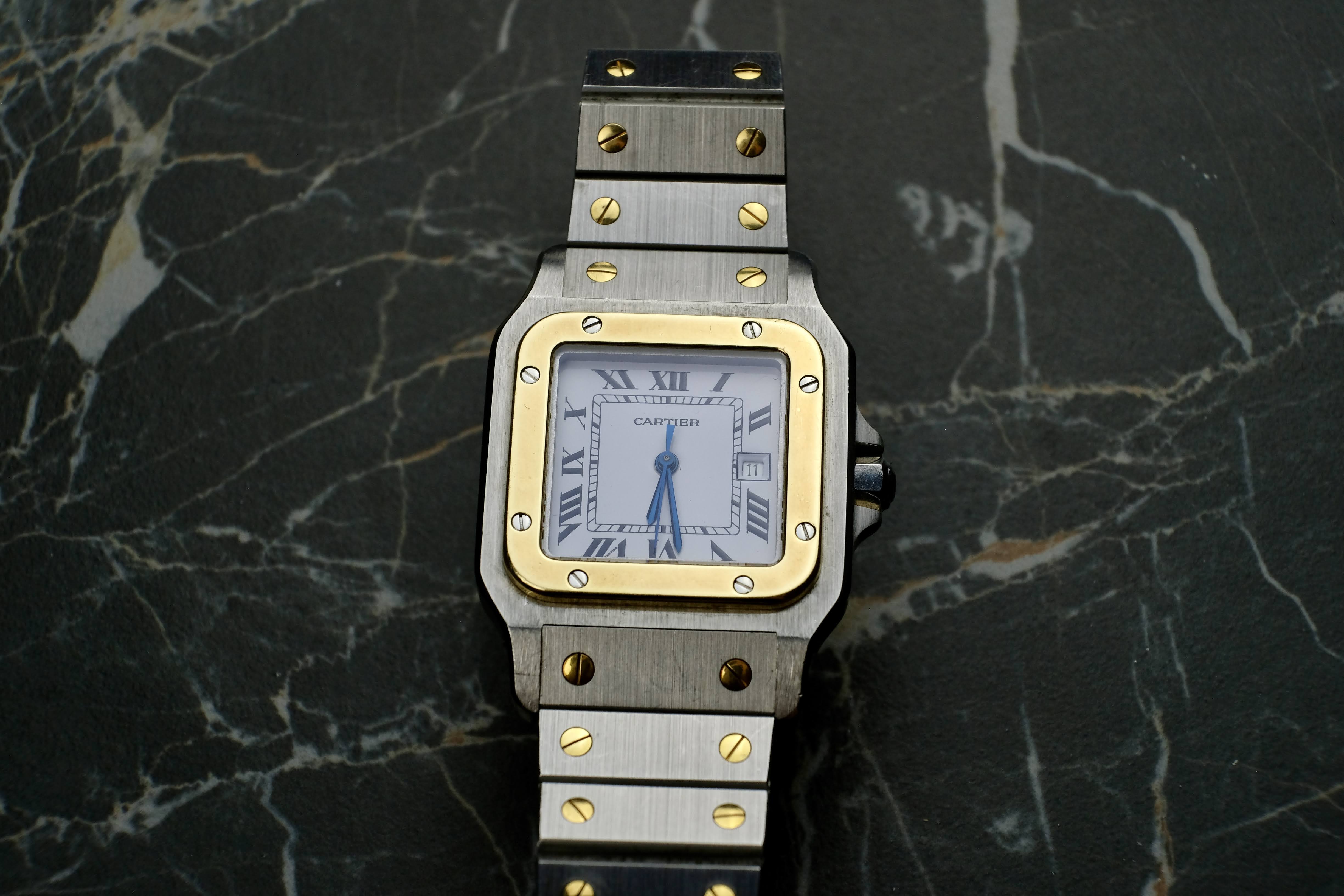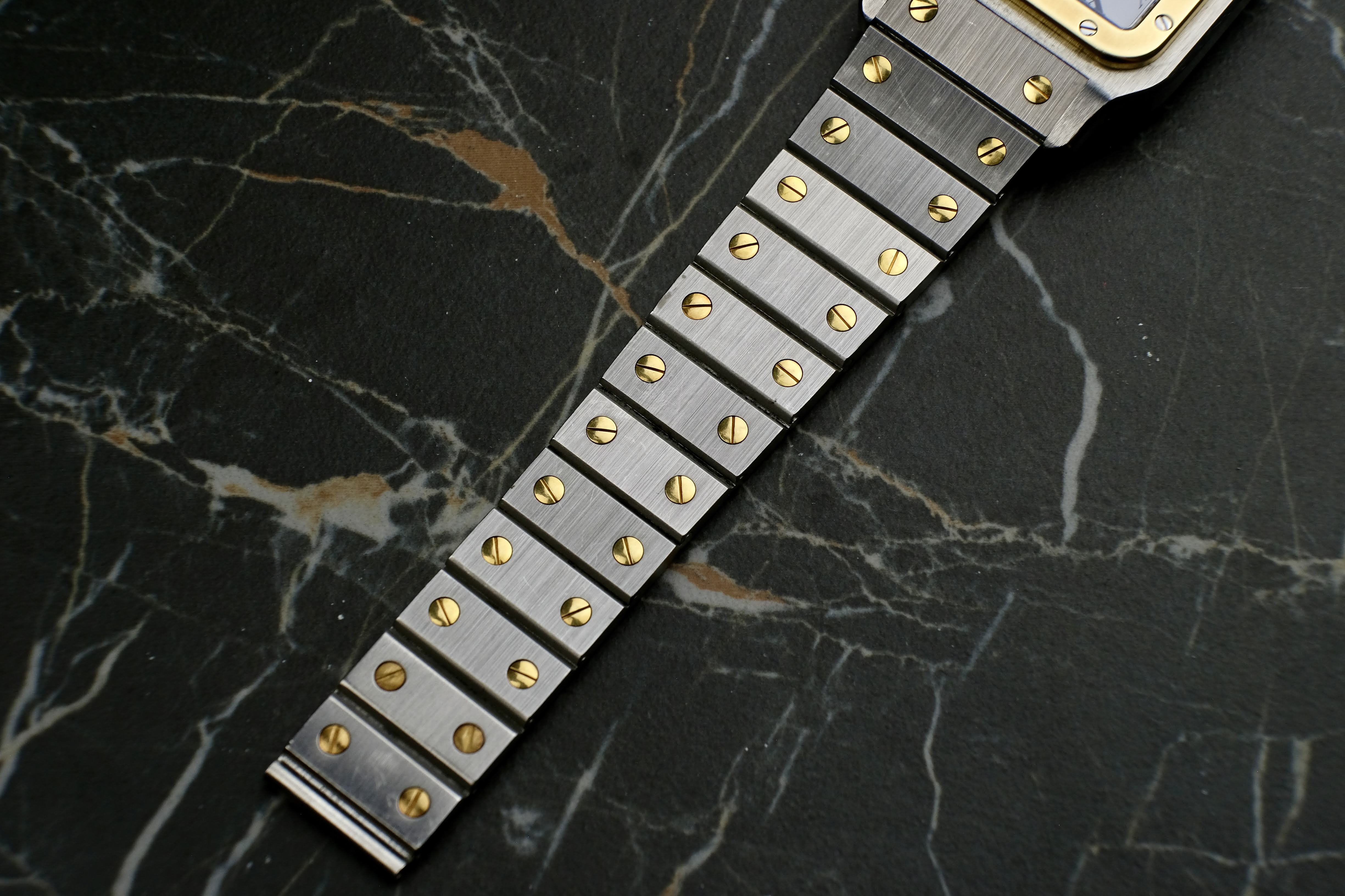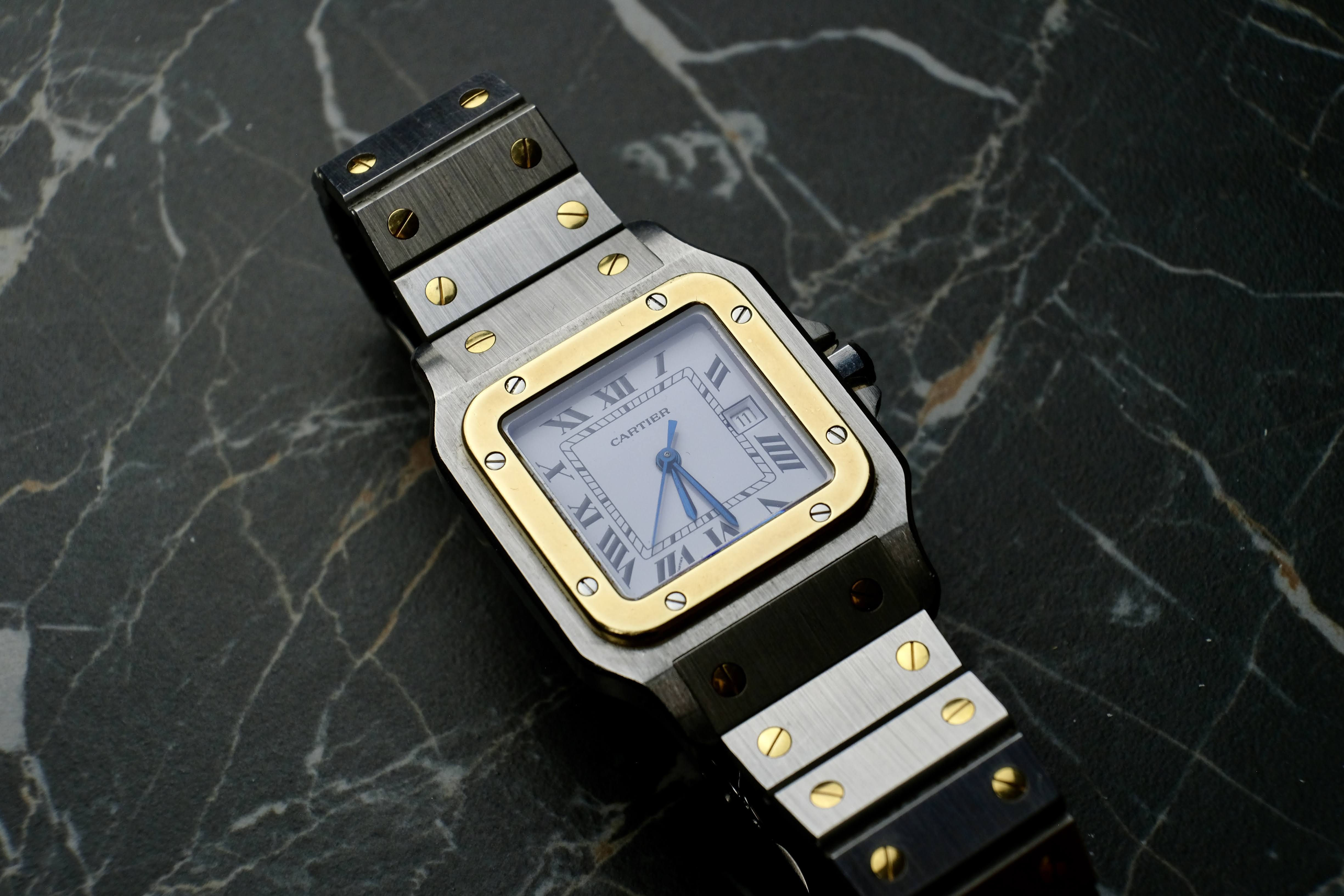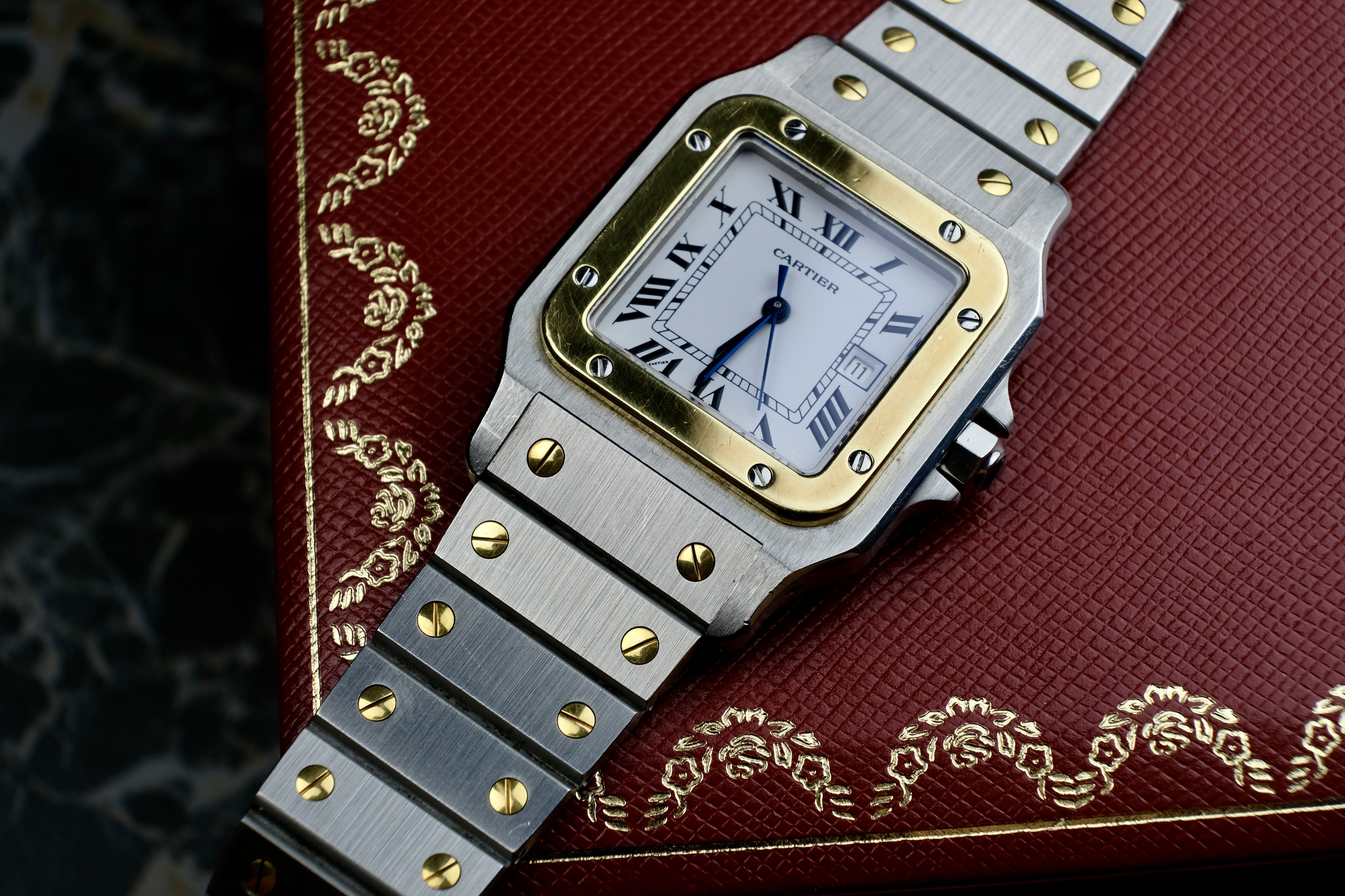 Here we have a super nice and very sharp Cartier Santos Carrée 2961 from the 80s: What I love is the original polish of the surface and the dark golden patina on the screws and bezel. Its getting harder and harder to get buy these in such condition.