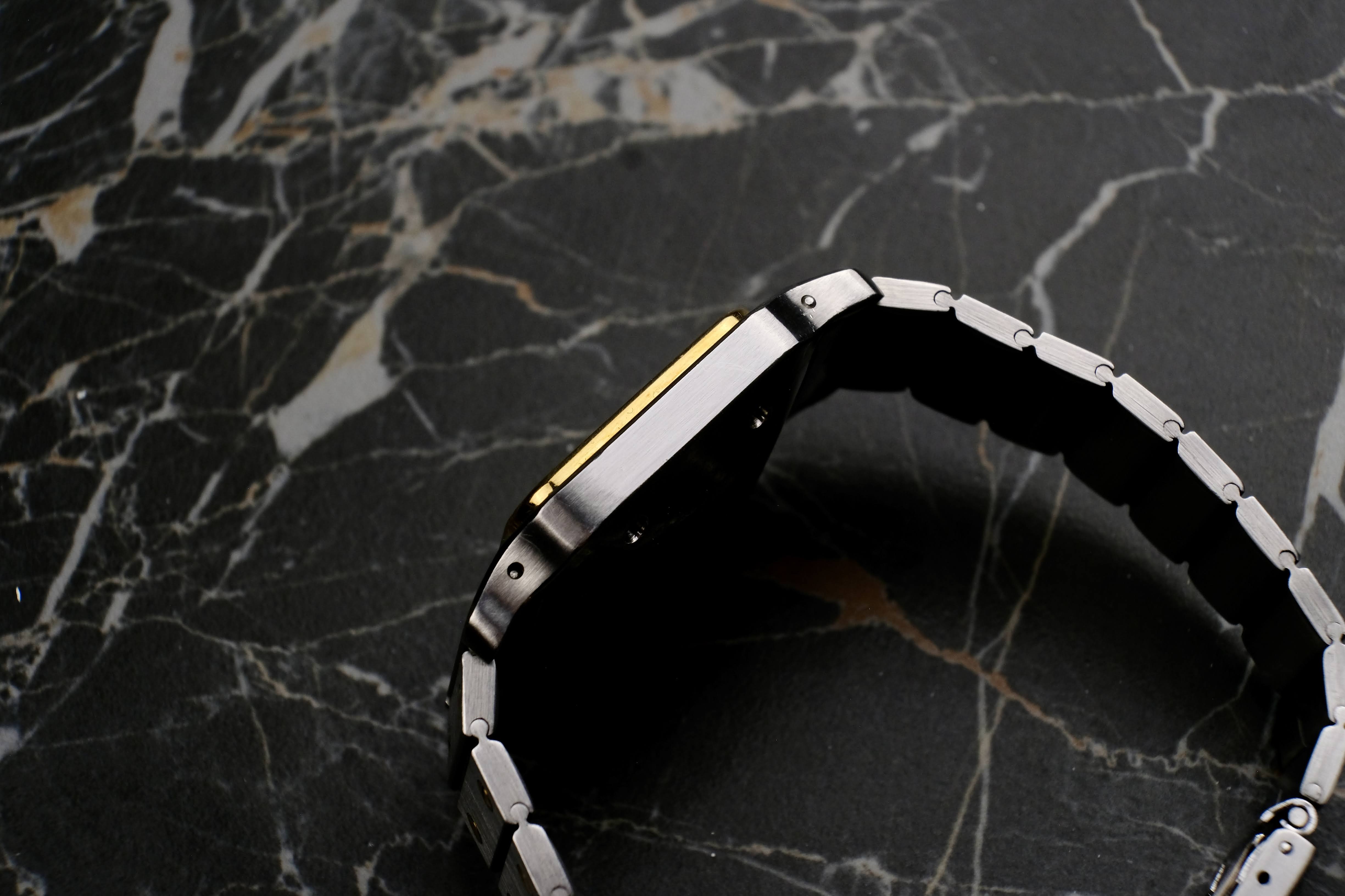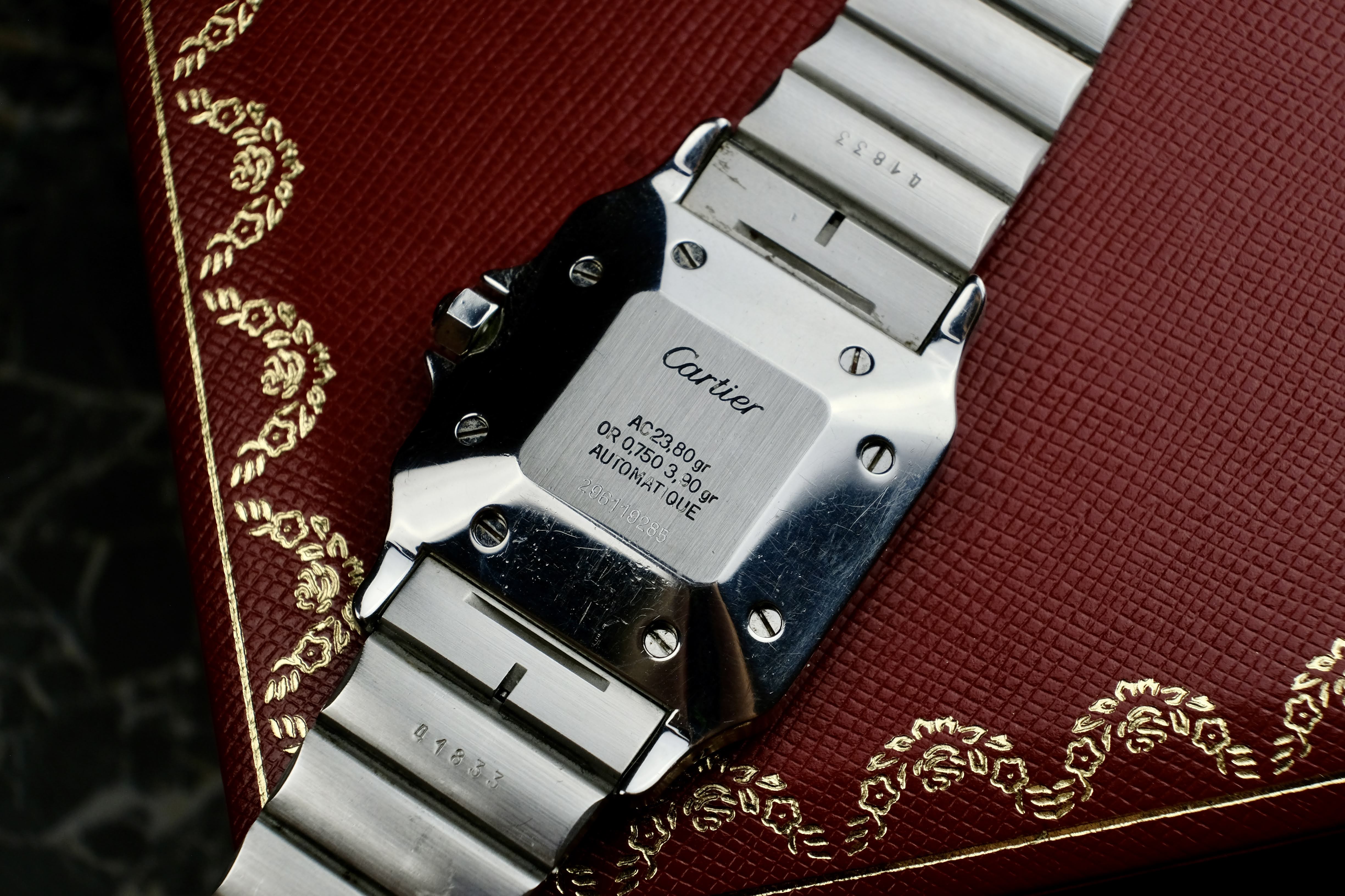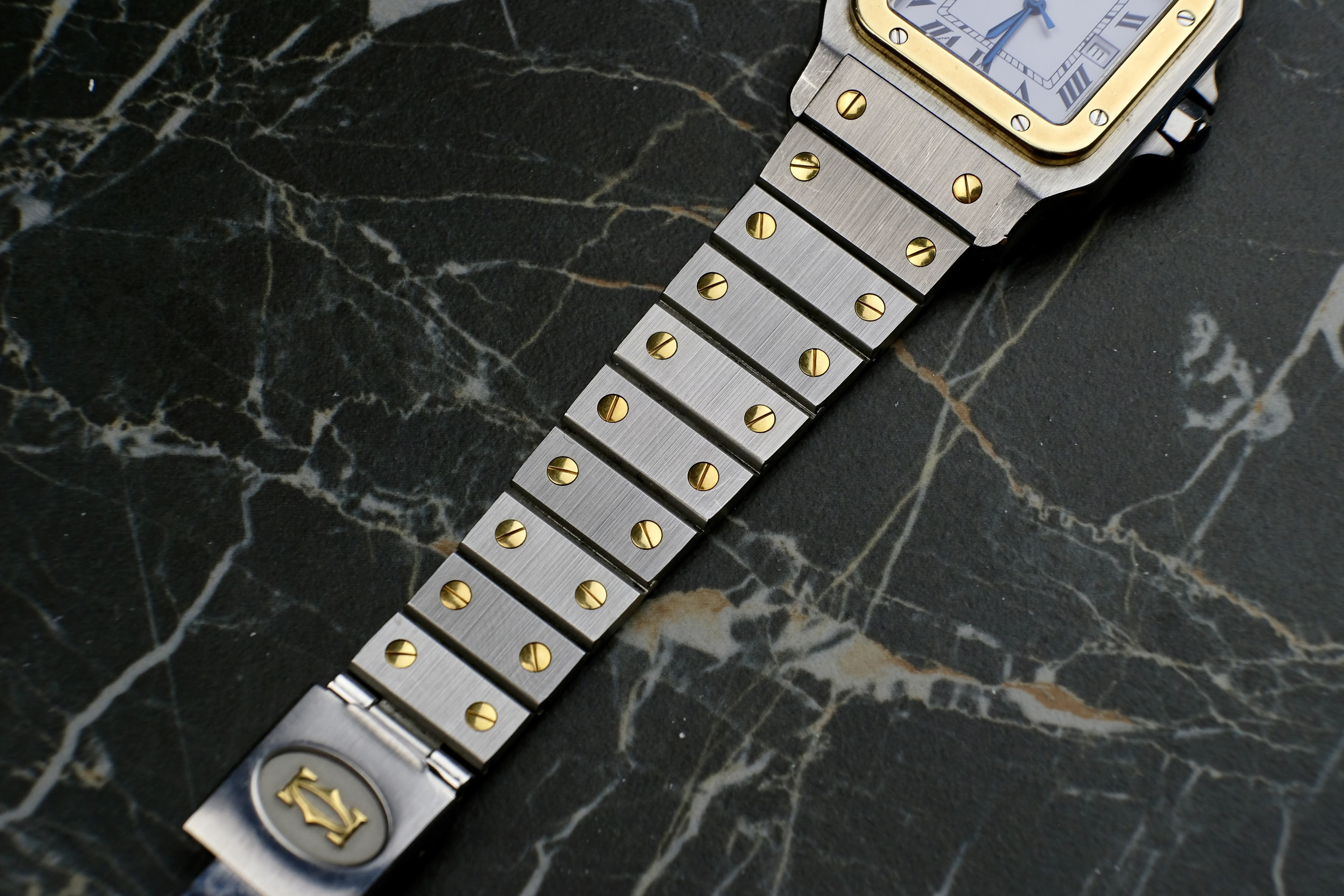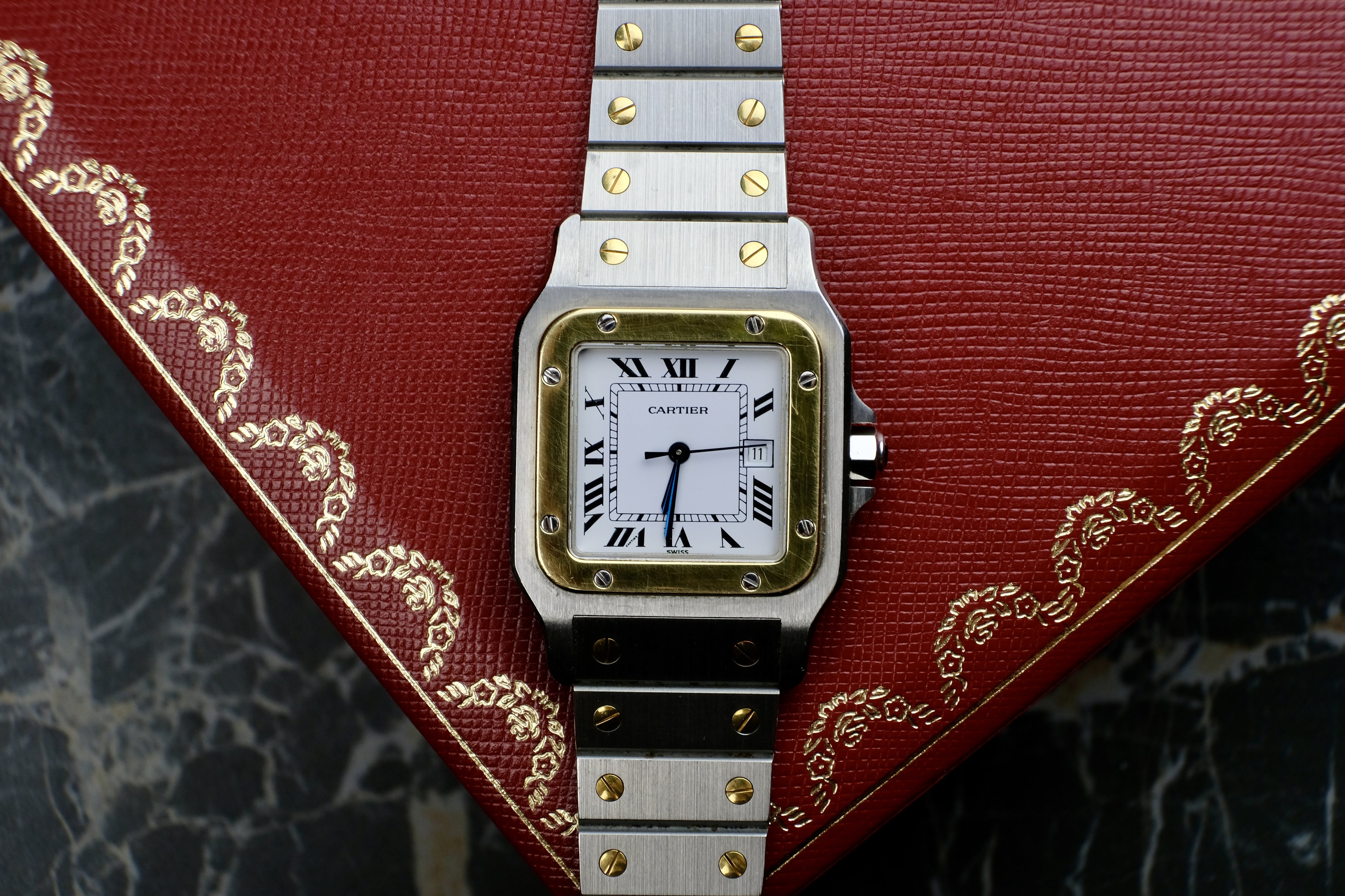 Here we have a super nice and very sharp Cartier Santos Carrée 2961 from the 80s: What I love is the original polish of the surface and the dark golden patina on the screws and bezel. Its getting harder and harder to get buy these in such condition.