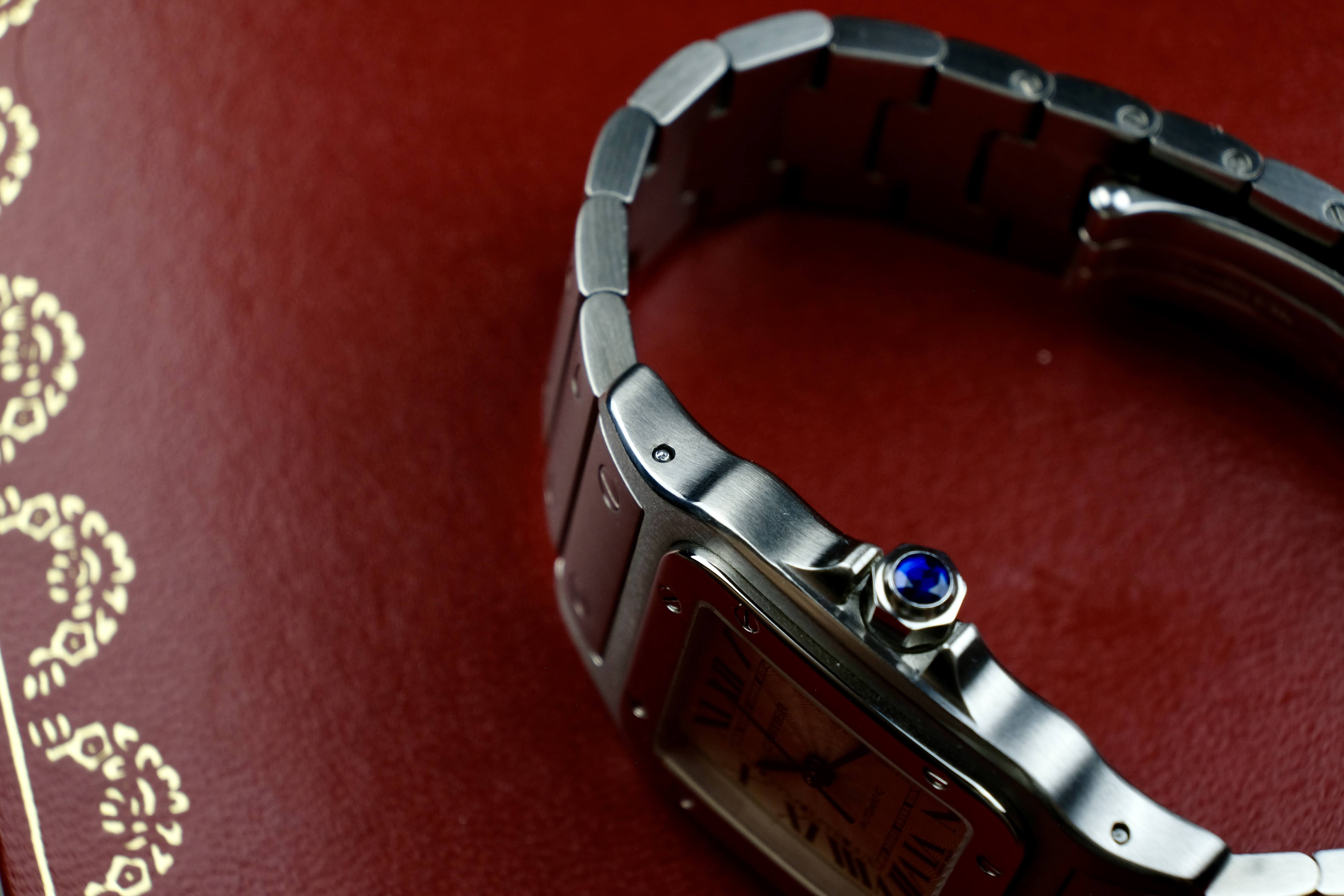 For sale is this very clean Cartier Santos Galbée reference 2319 - Produced around 2000 this Galbée is driven my an automatic movement and has a very beautiful guilloche dial which makes this watch very special. Thanks to its shape it hugs your wrist like no other watch does.