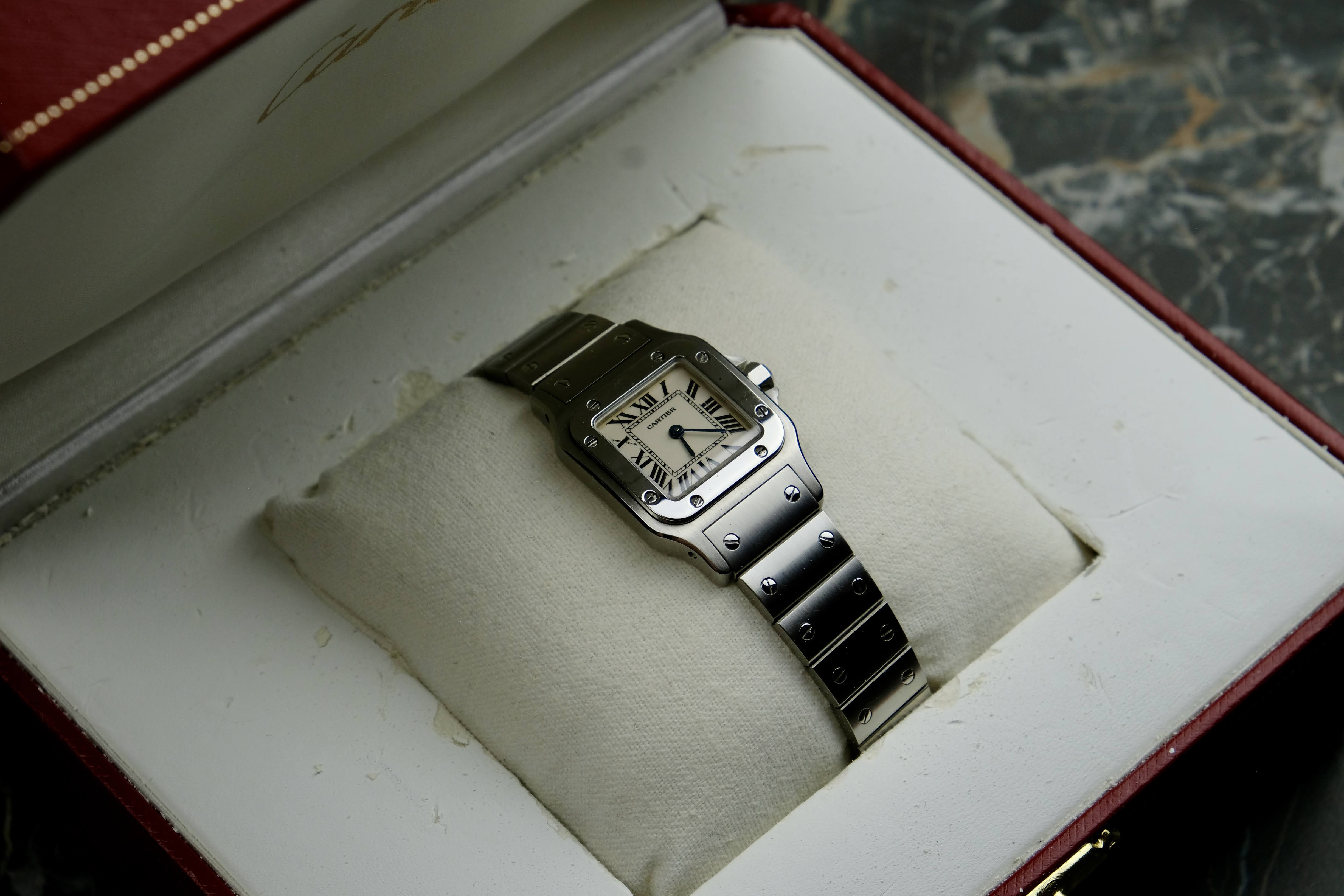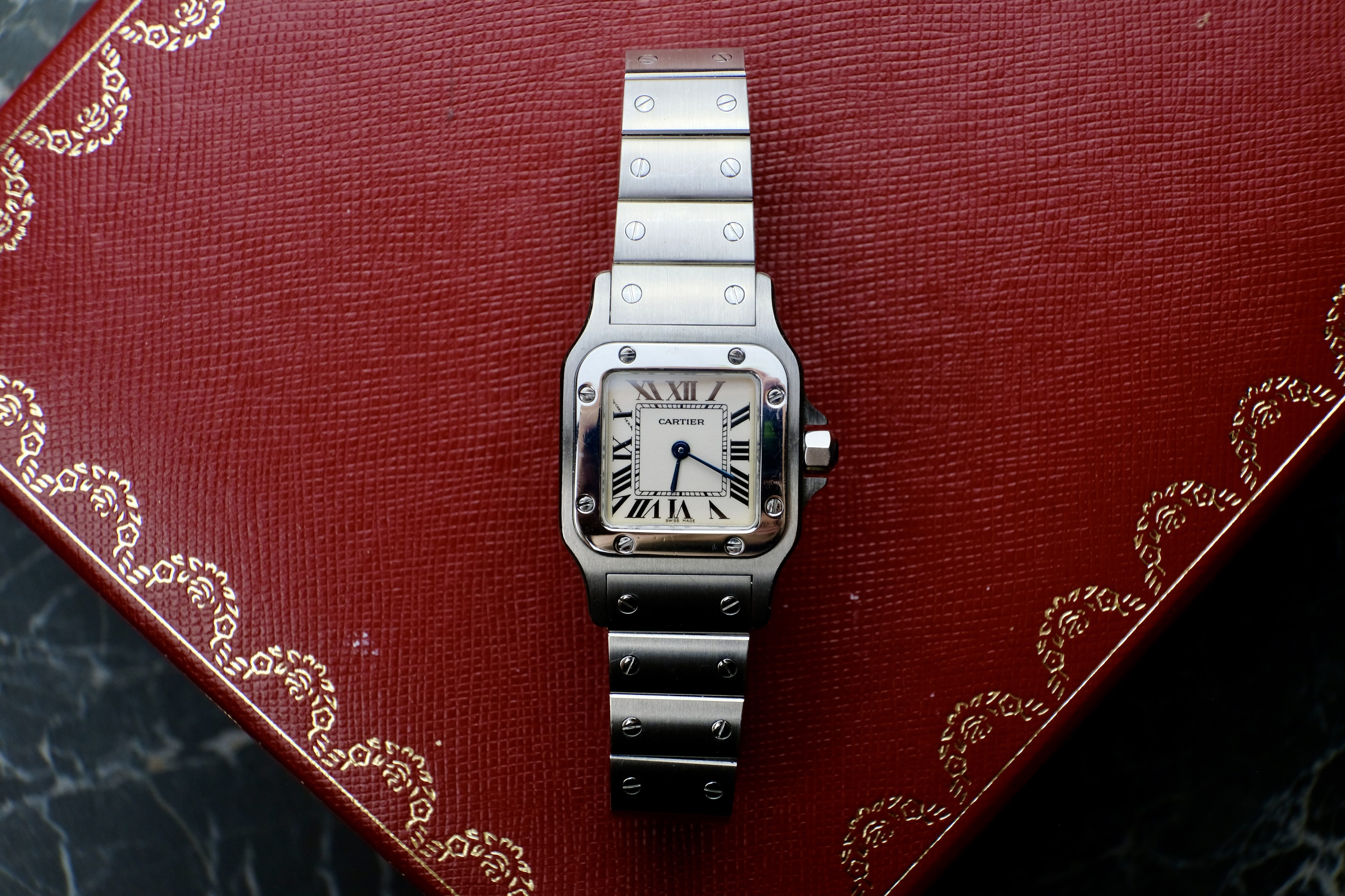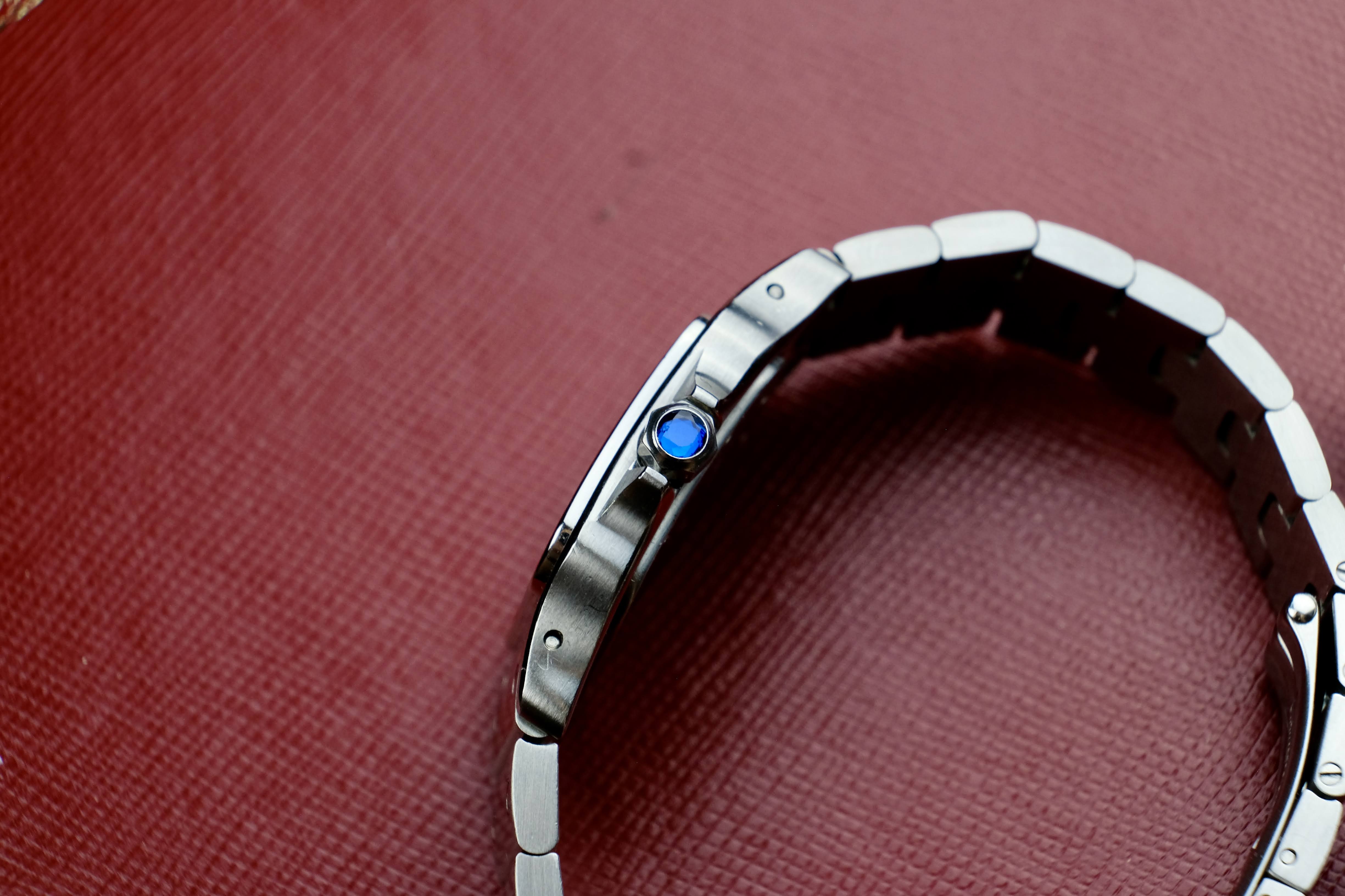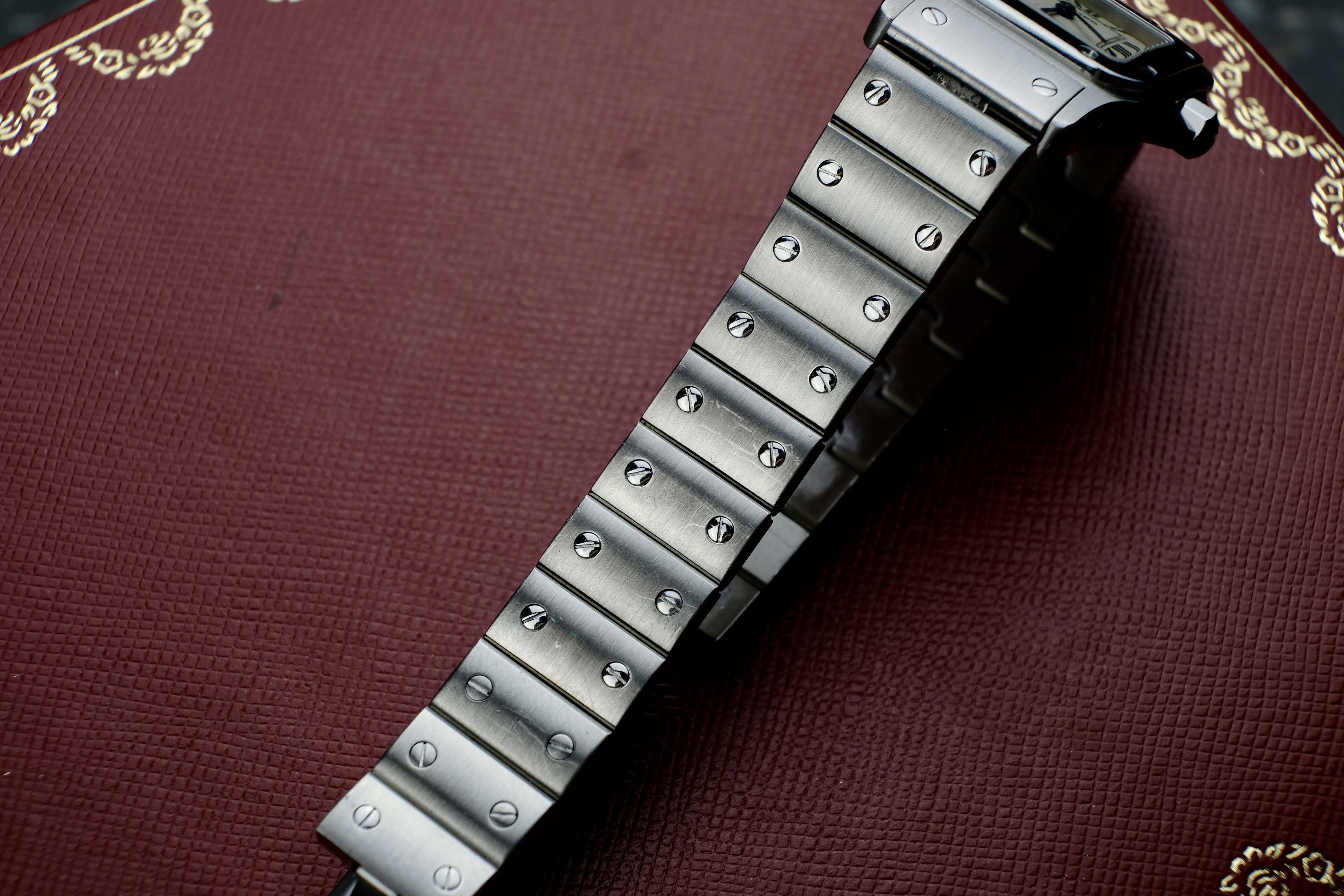 The watch is unpolished, therefore it is very sharp and carries only little signs of wear. The crown is very good and so are the dial and hands. You will get the watch with the Cartier box.