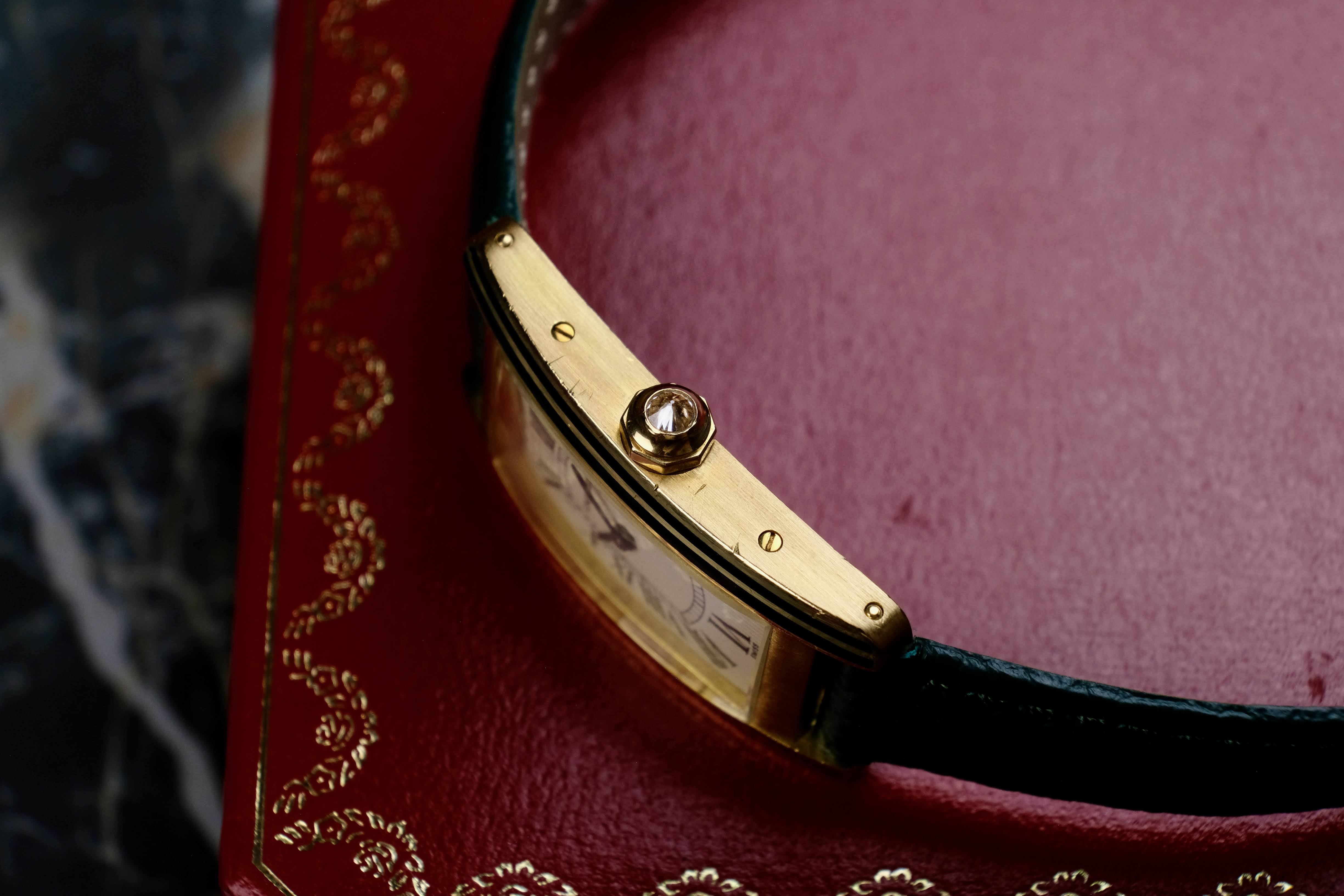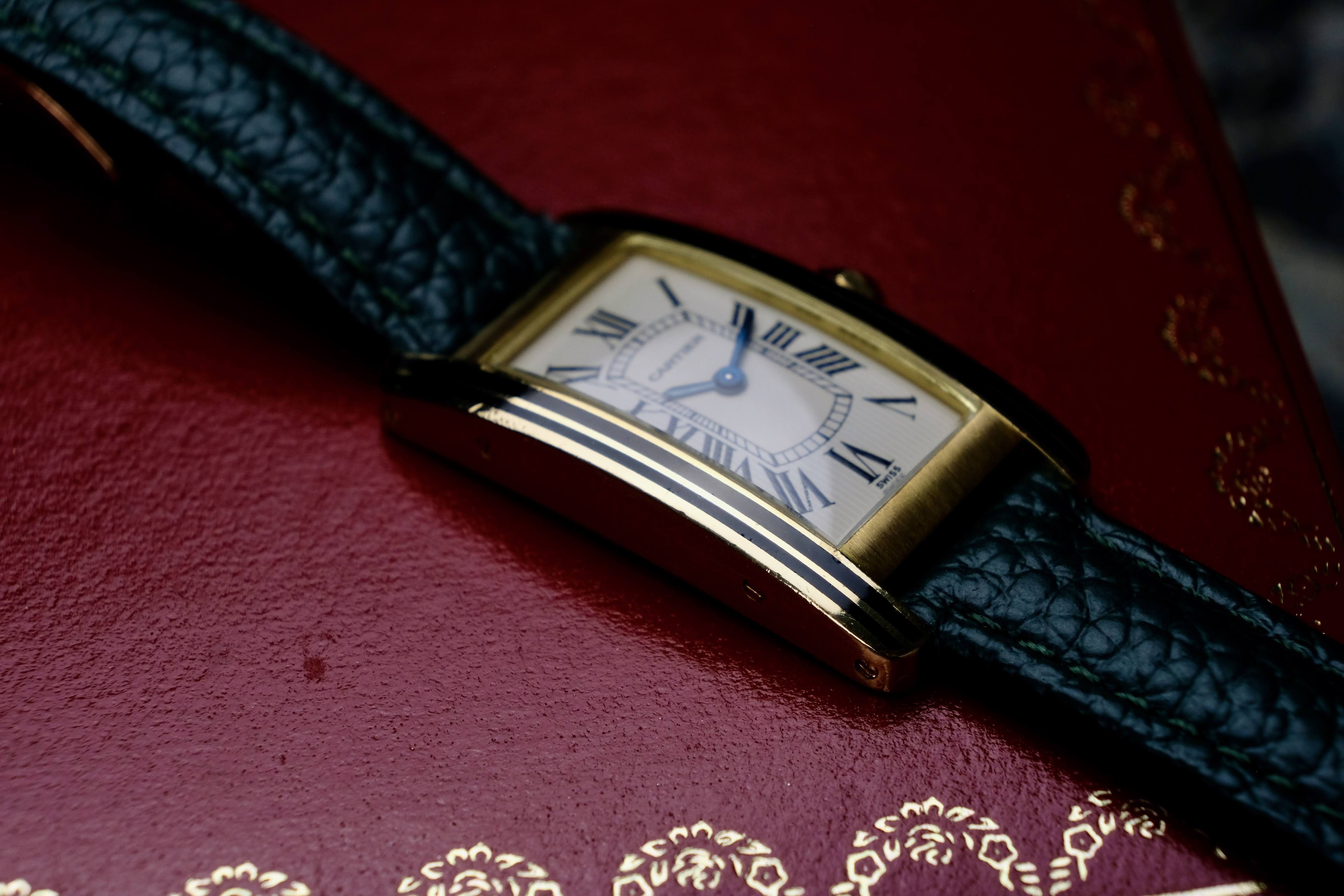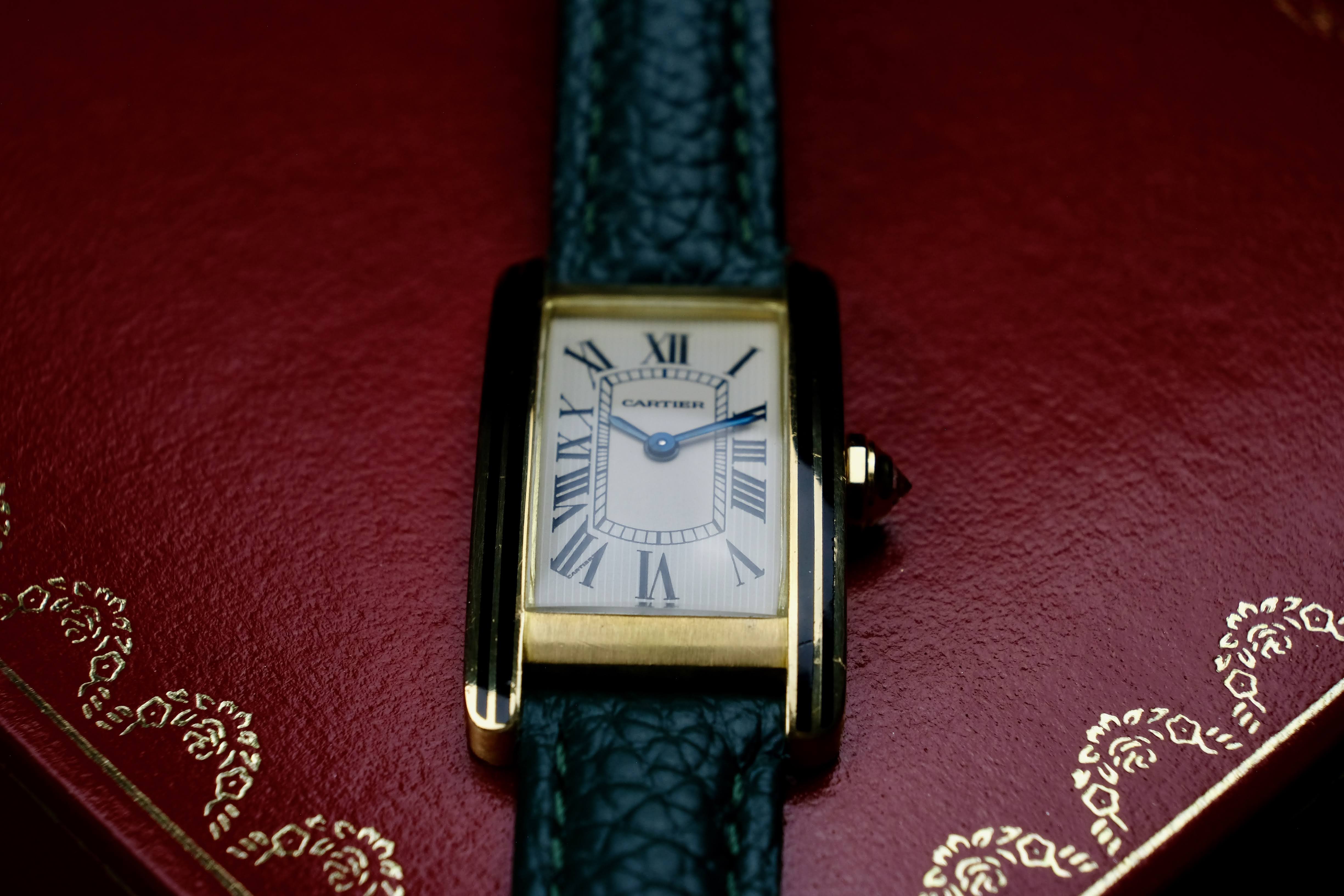 This is your chance to buy quite a rare Tank Americaine and we all know how rare enamel filled Cartier watches are - Bought 1990 in Hamburg at Cartier this watch exists 2 times so far - another one was sold 2023 at an auction. If you check out past auctions of older Cartier enamel filled watches the price is telling you how rare these are. Lets talk about the size: 19mm width does not sound much, but 35mm length gives the watch presence on the wrist - Lets compare this with the legendary Cintree and for this it would be the medium model, which is 100% wearable by men.