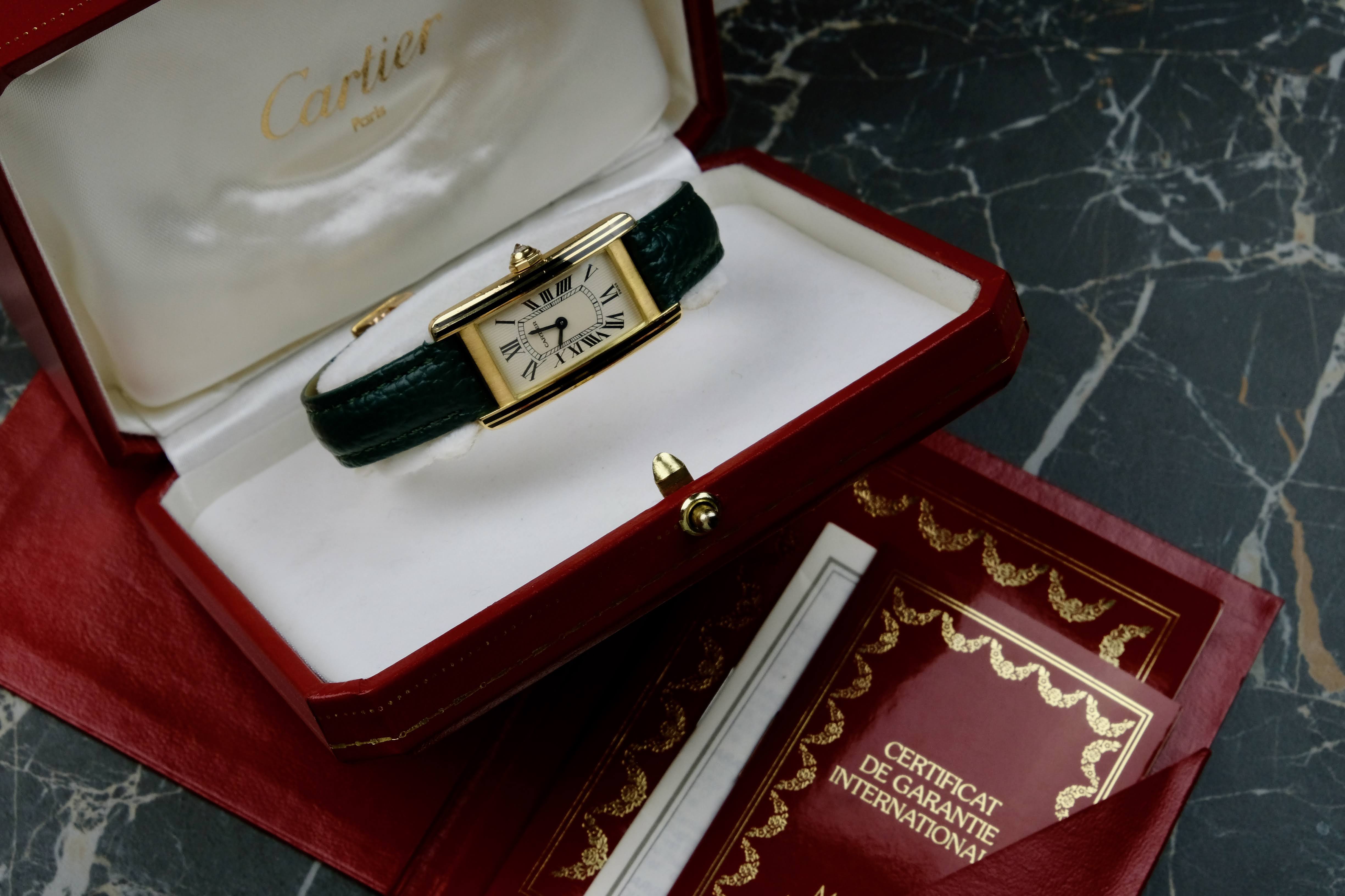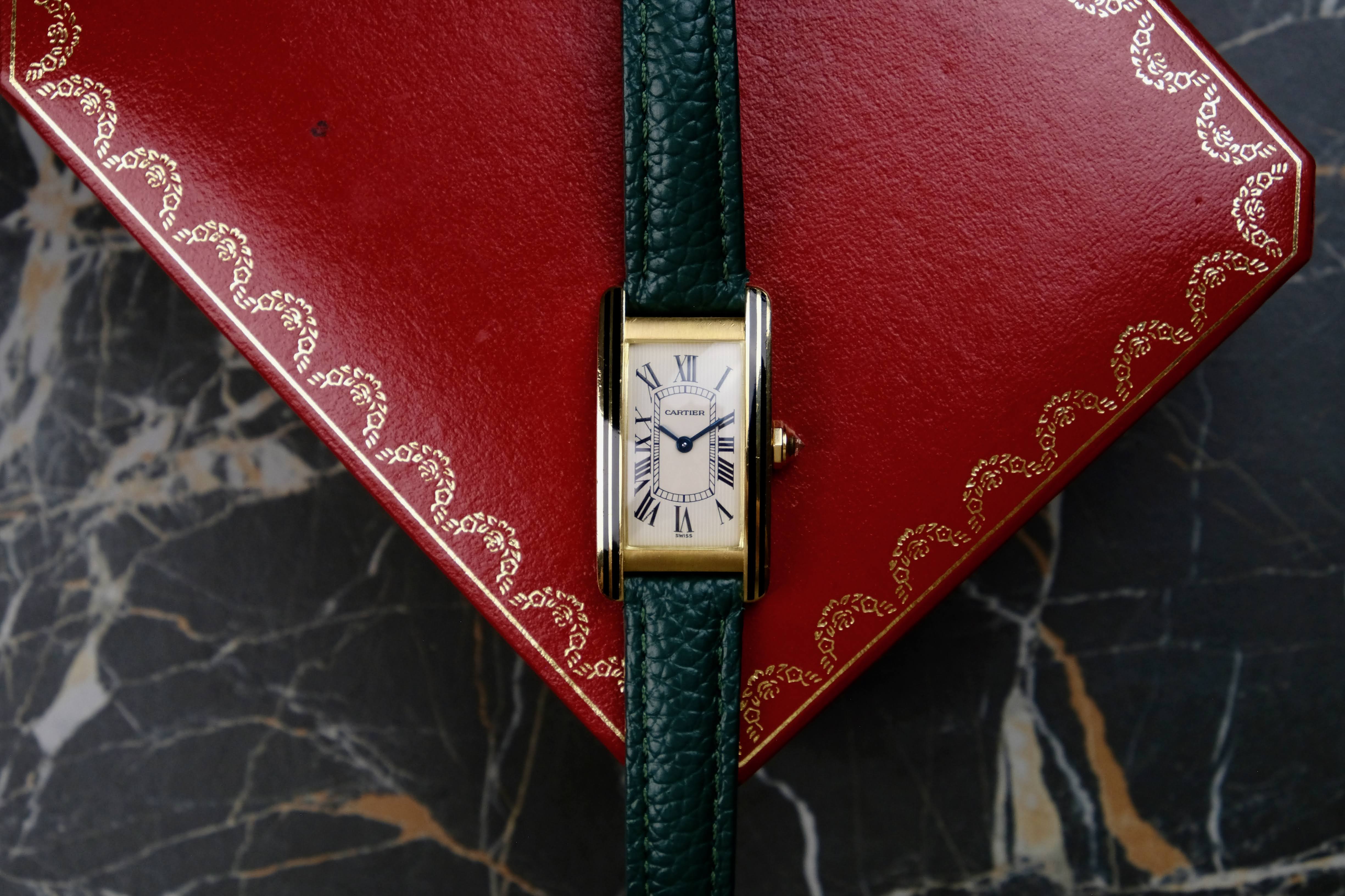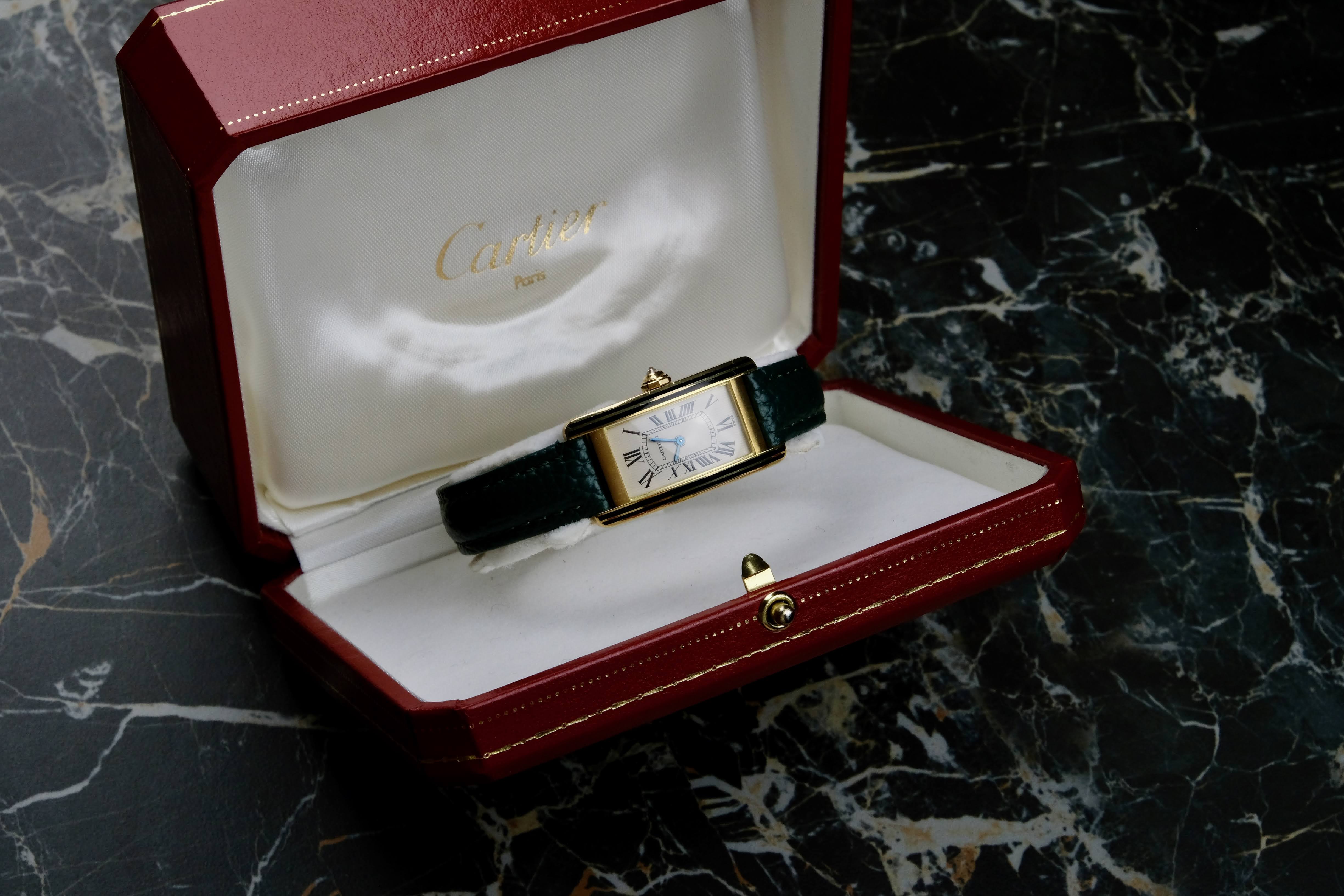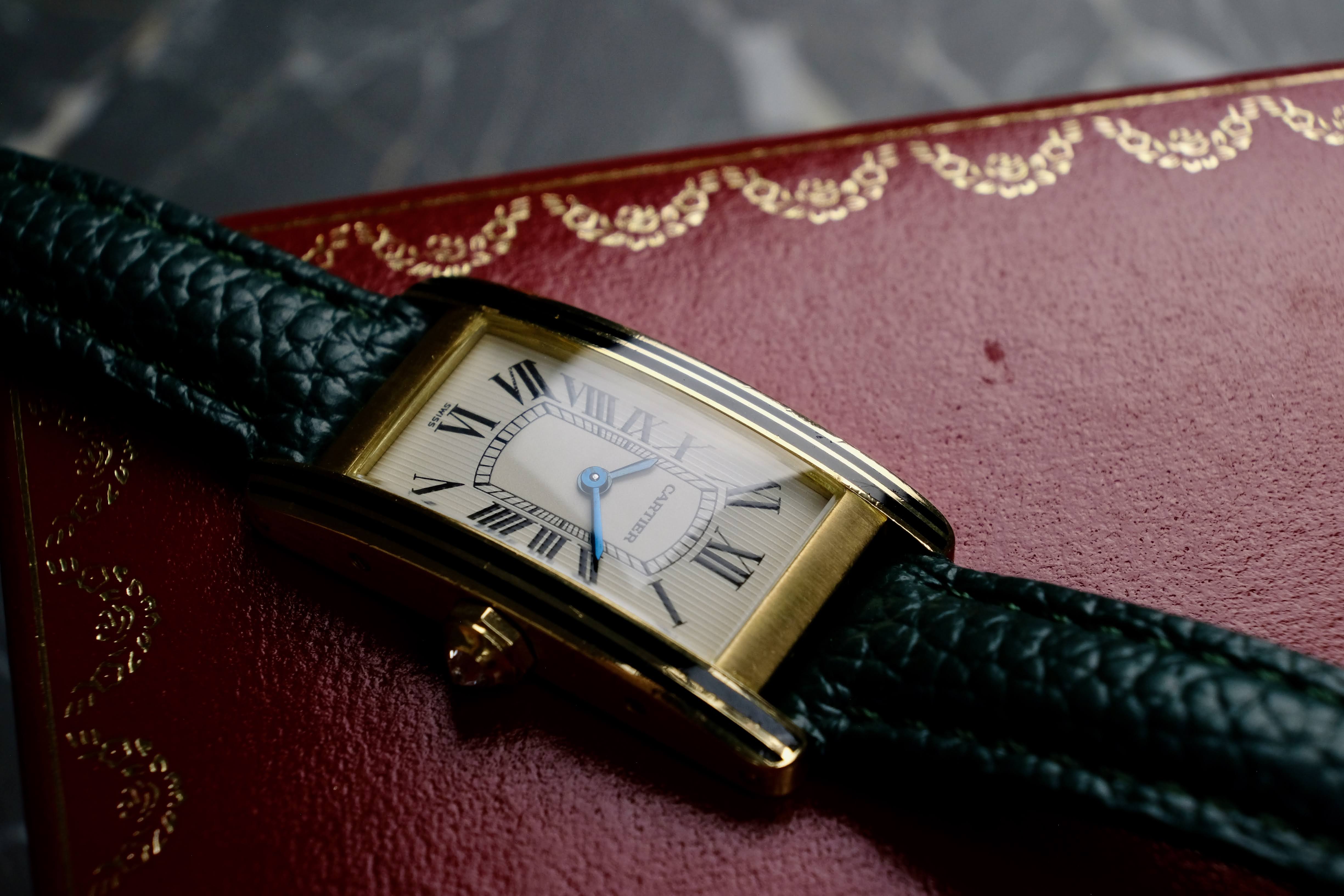 This is your chance to buy quite a rare Tank Americaine and we all know how rare enamel filled Cartier watches are - Bought 1990 in Hamburg at Cartier this watch exists 2 times so far - another one was sold 2023 at an auction. If you check out past auctions of older Cartier enamel filled watches the price is telling you how rare these are. Lets talk about the size: 19mm width does not sound much, but 35mm length gives the watch presence on the wrist - Lets compare this with the legendary Cintree and for this it would be the medium model, which is 100% wearable by men.