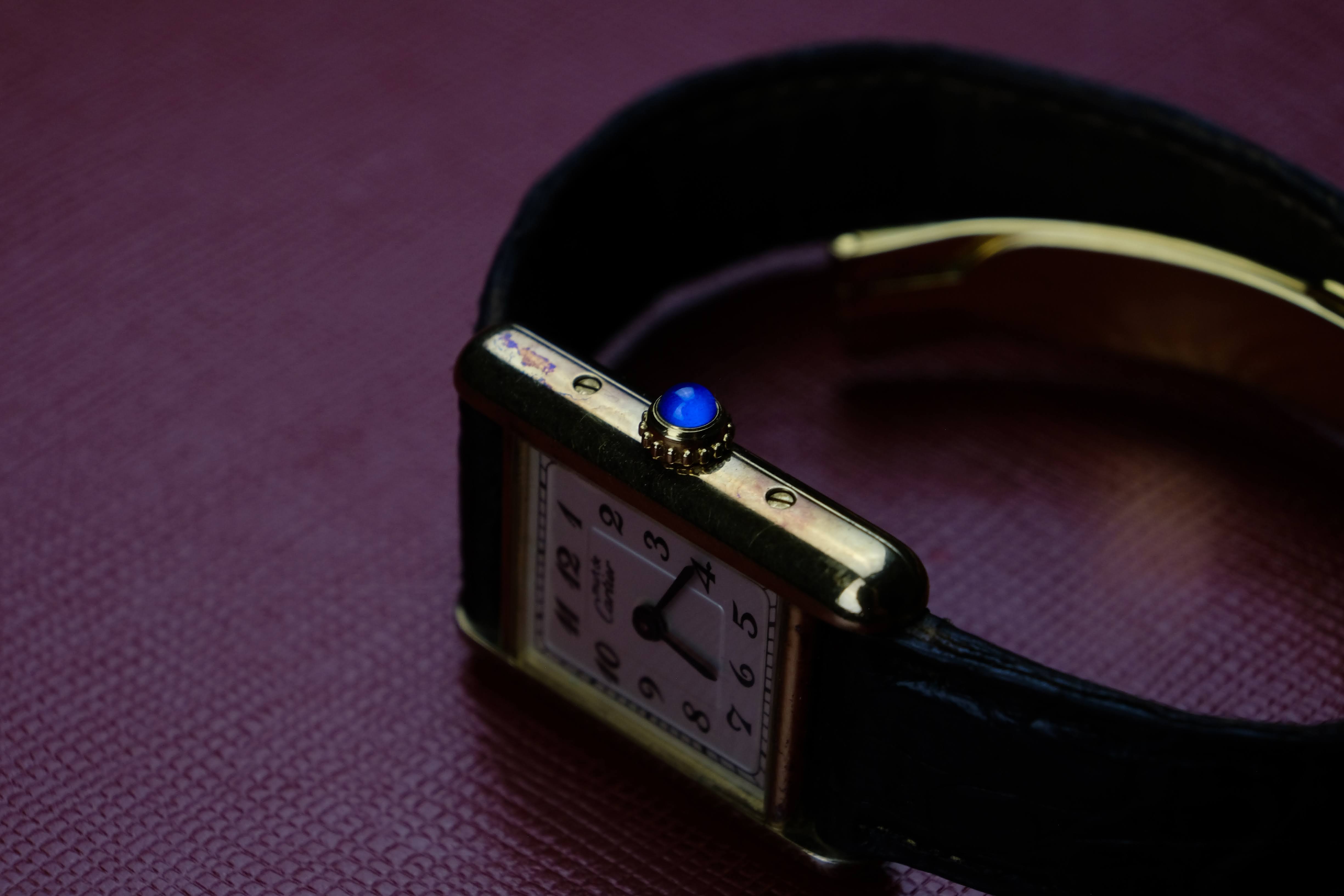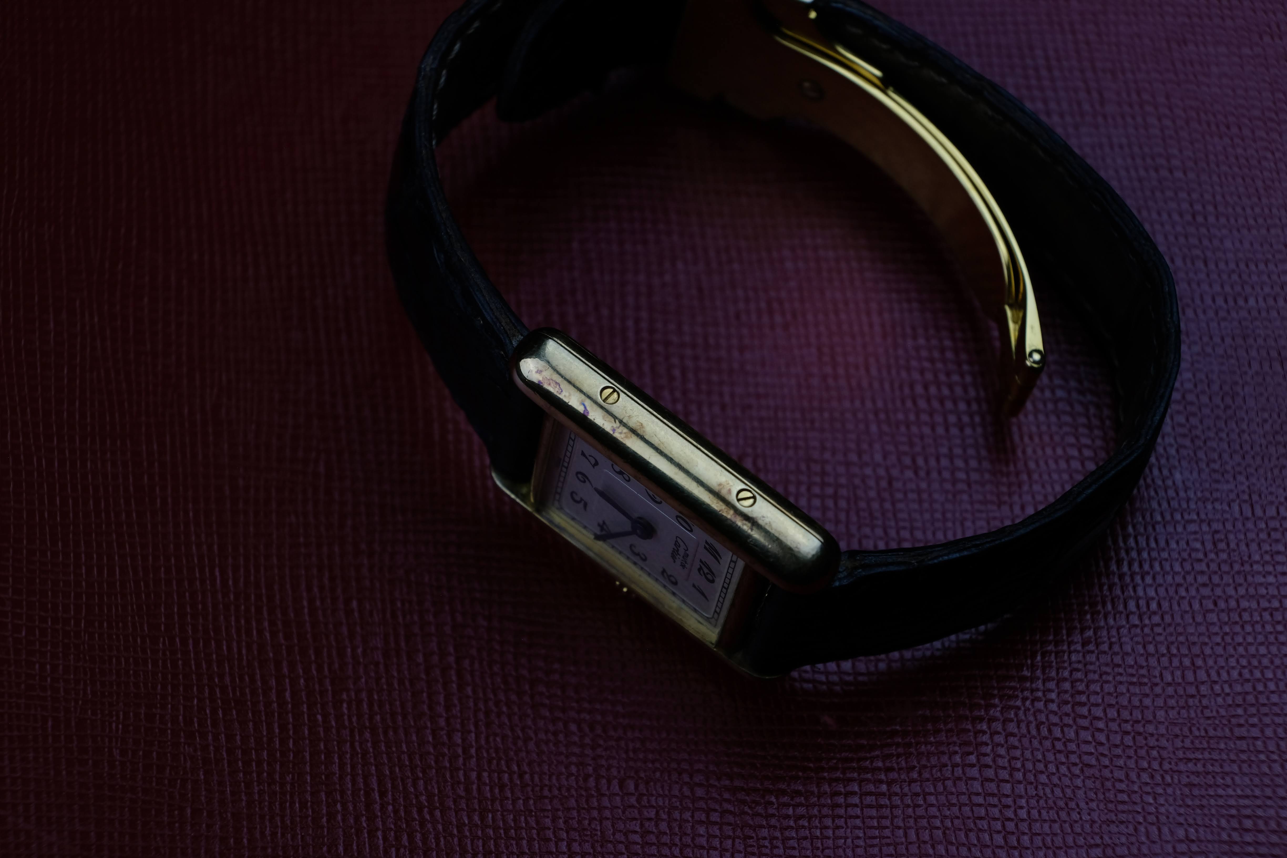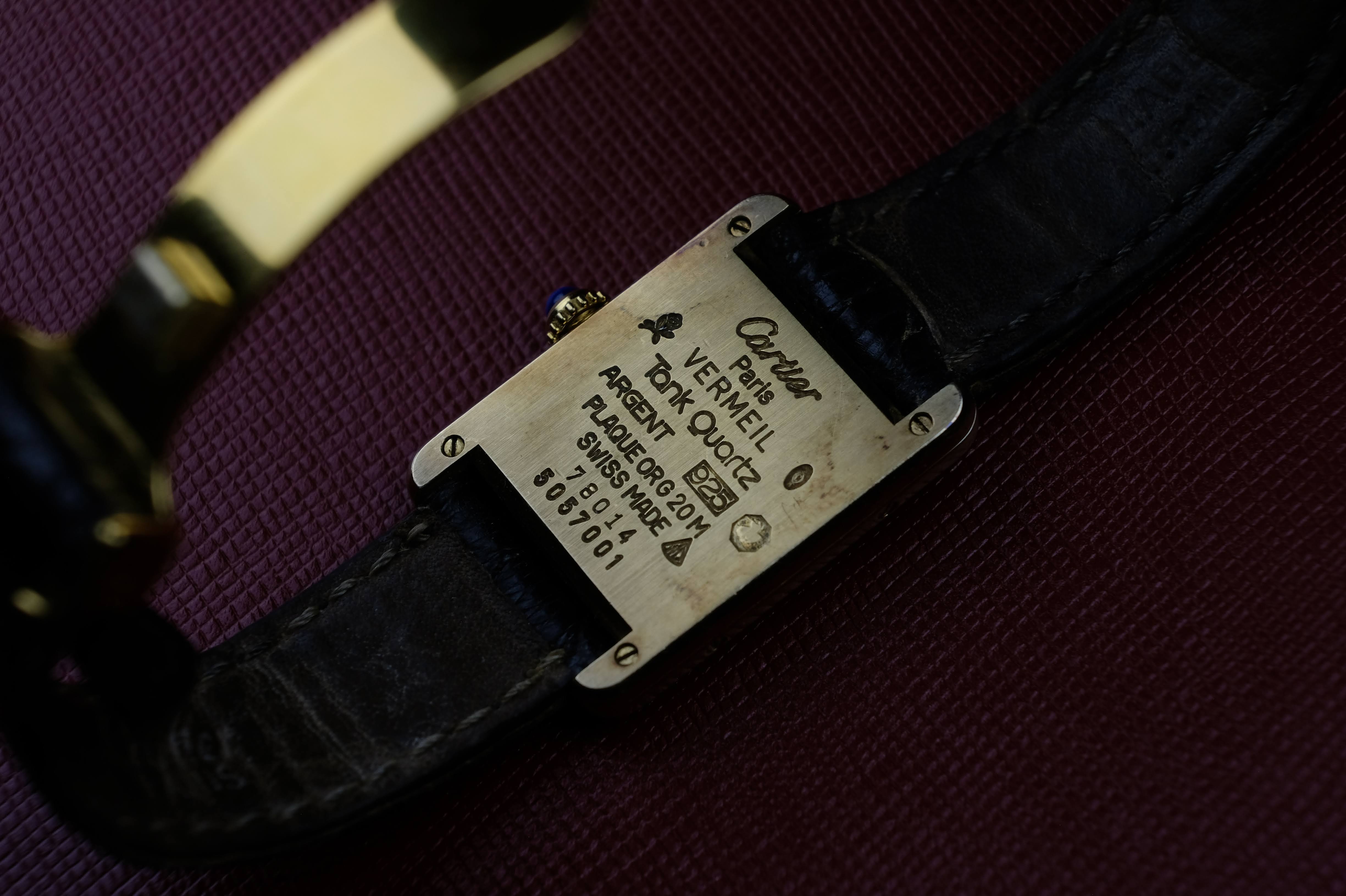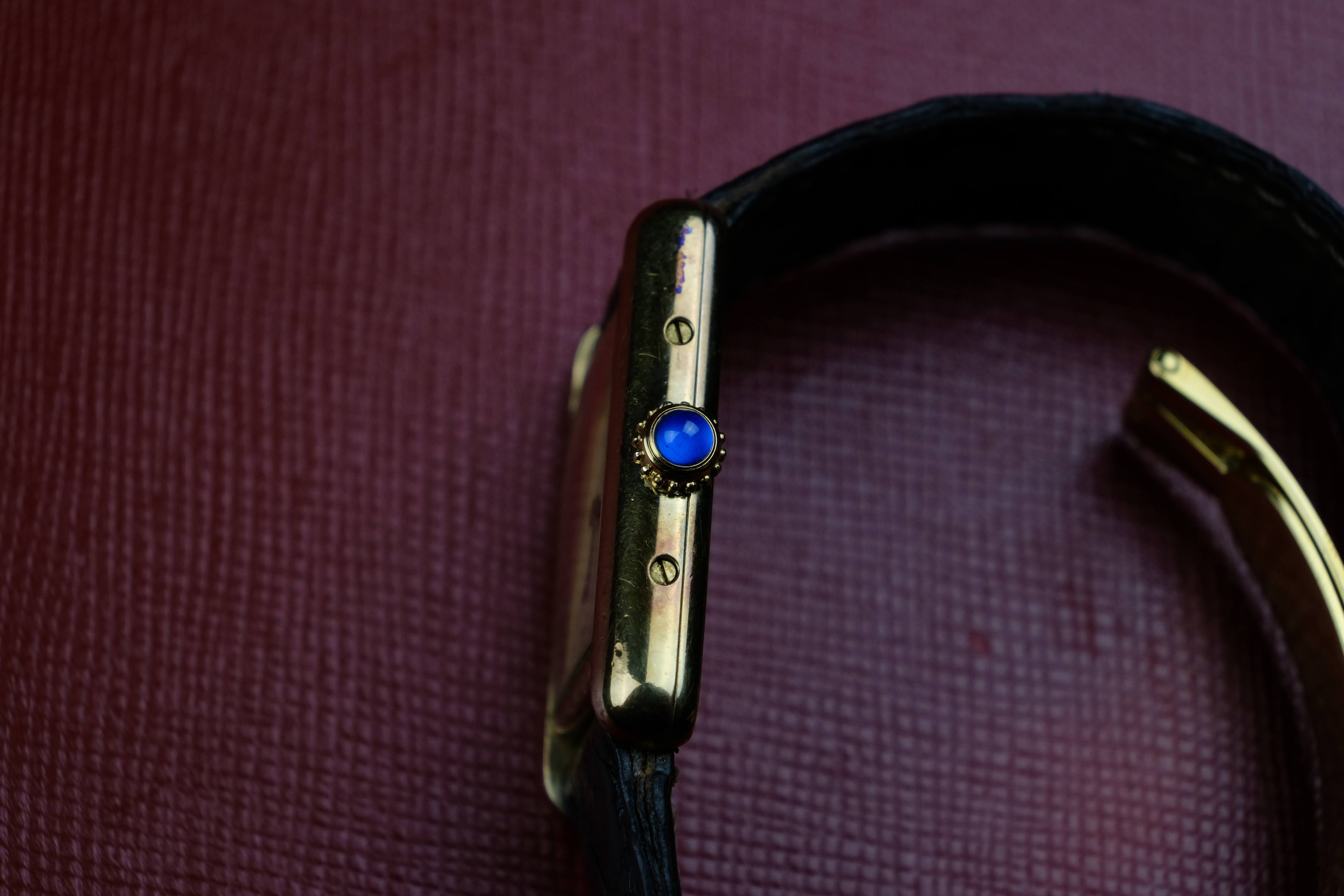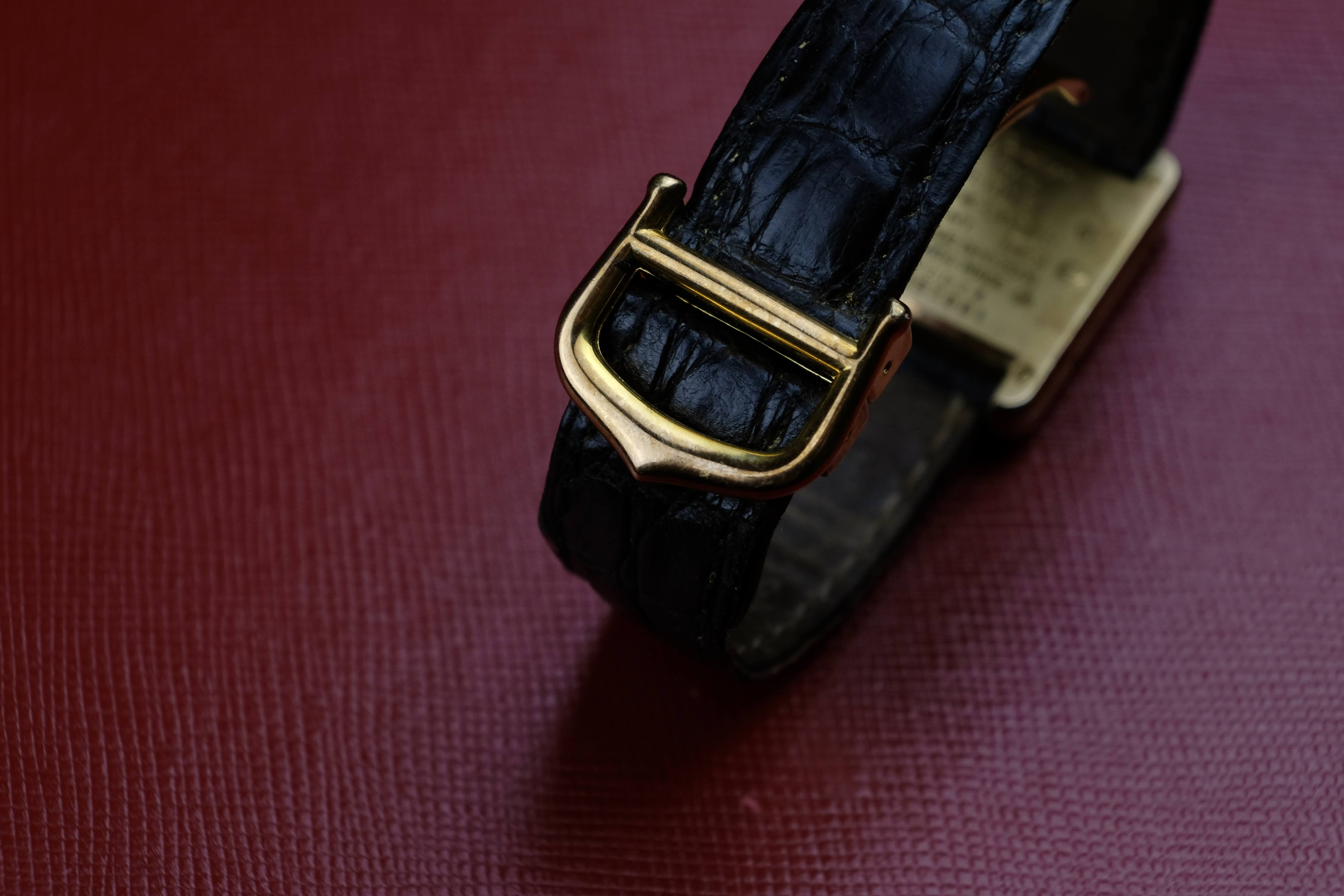 As mentioned the watch is in untouched condition, you can also check the sharp screw heads on the sides of the watch plus the caseback carrying deep and sharp engravings. The case has its original gold plating, no silver parts are showing through and the the same is for the deployant. The dial shows little little patina towards the case, most Breguet watches show a lot more patina or have changed dials, this is the original one. The hands are also in good condition like the crown. The strap is worn. The battery has been changed and you will get the watch in a Cartier Service pouch.