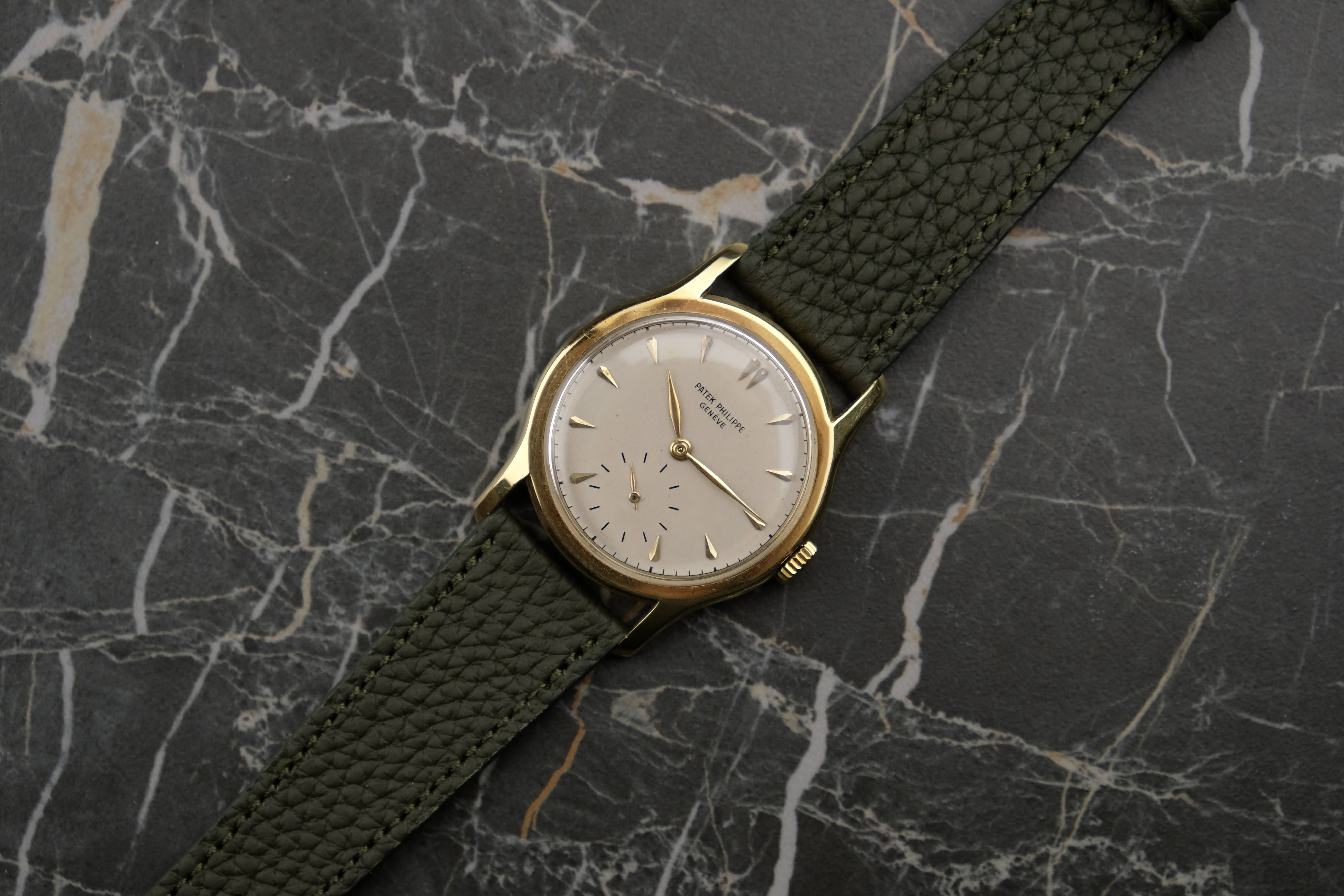 The watch is in great condition for its age: unsigned, original crown, correct enamel dial, a great case, and clean hands. The service history is unknown, but the watch runs great and without any problems. You will receive the watch in a Patek Philippe service case with a generic bracelet and a gold-plated pin buckle.