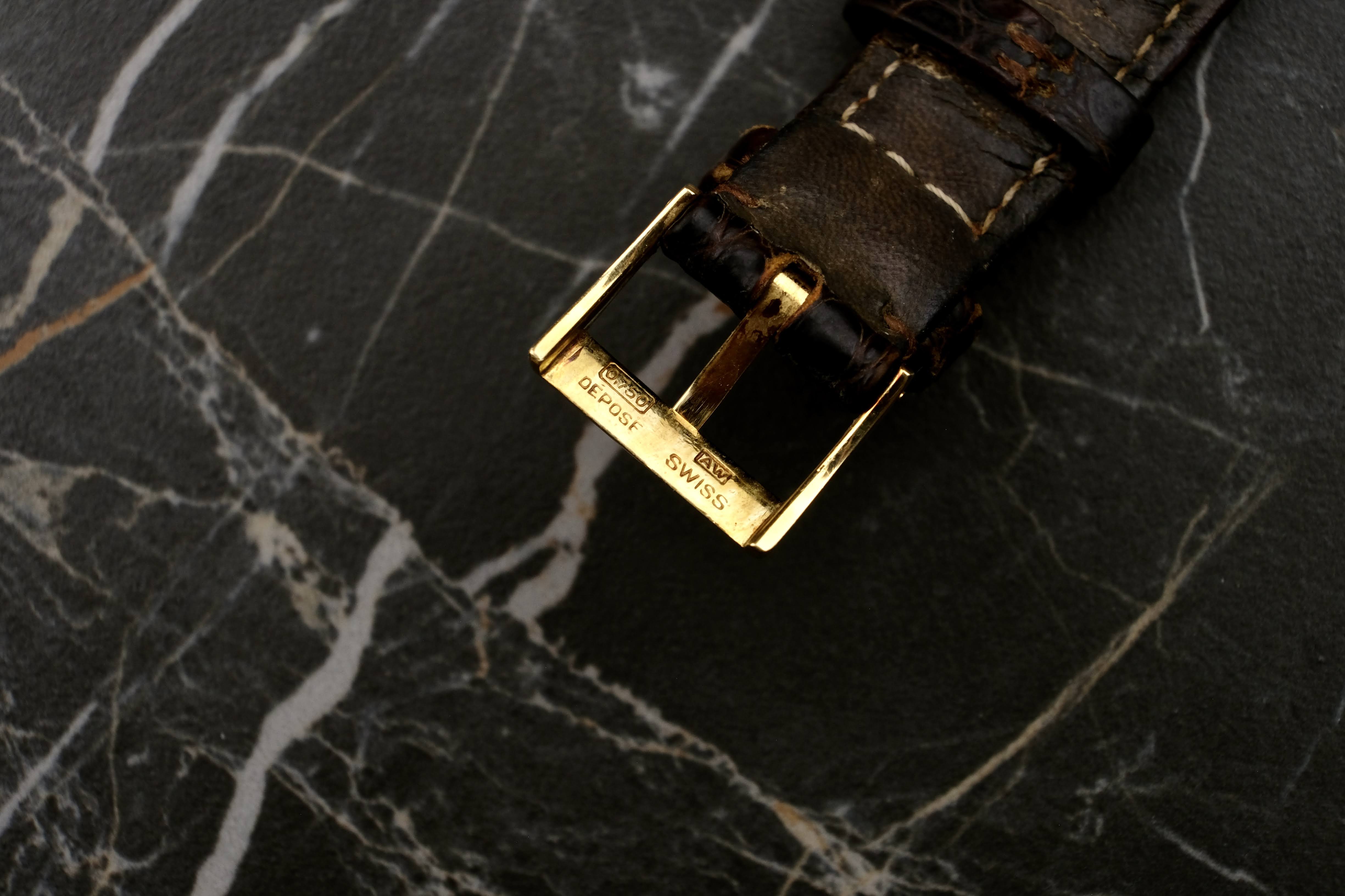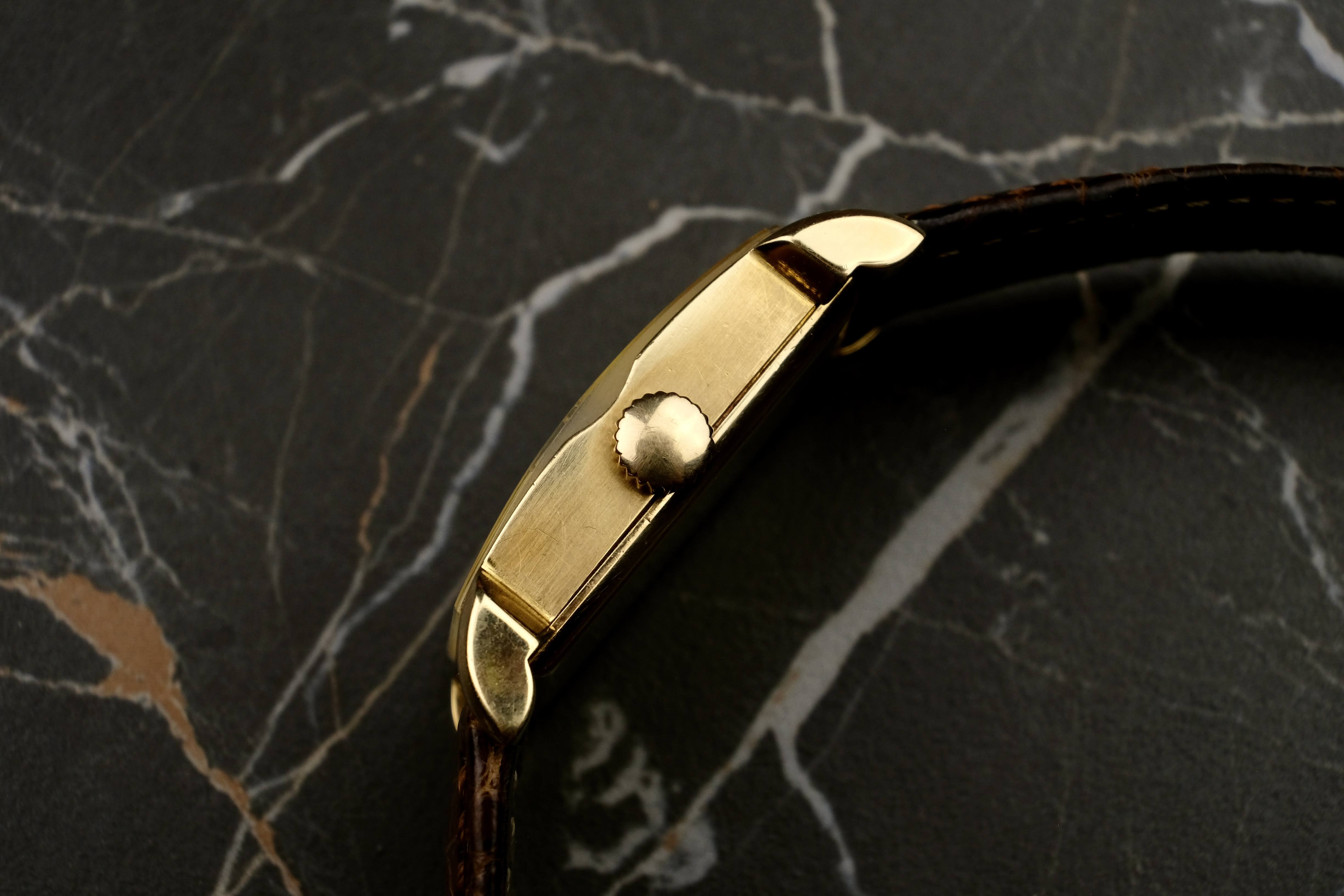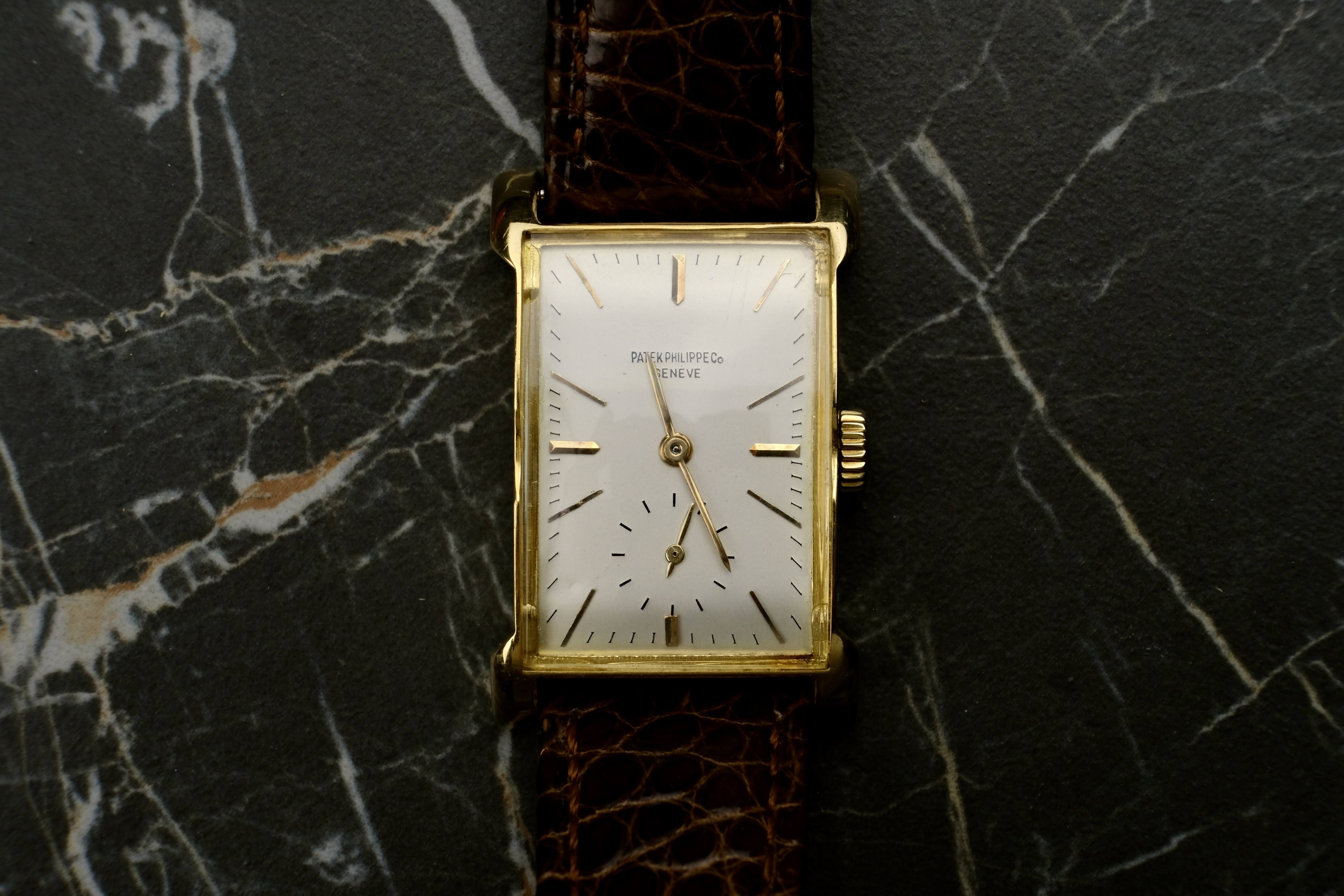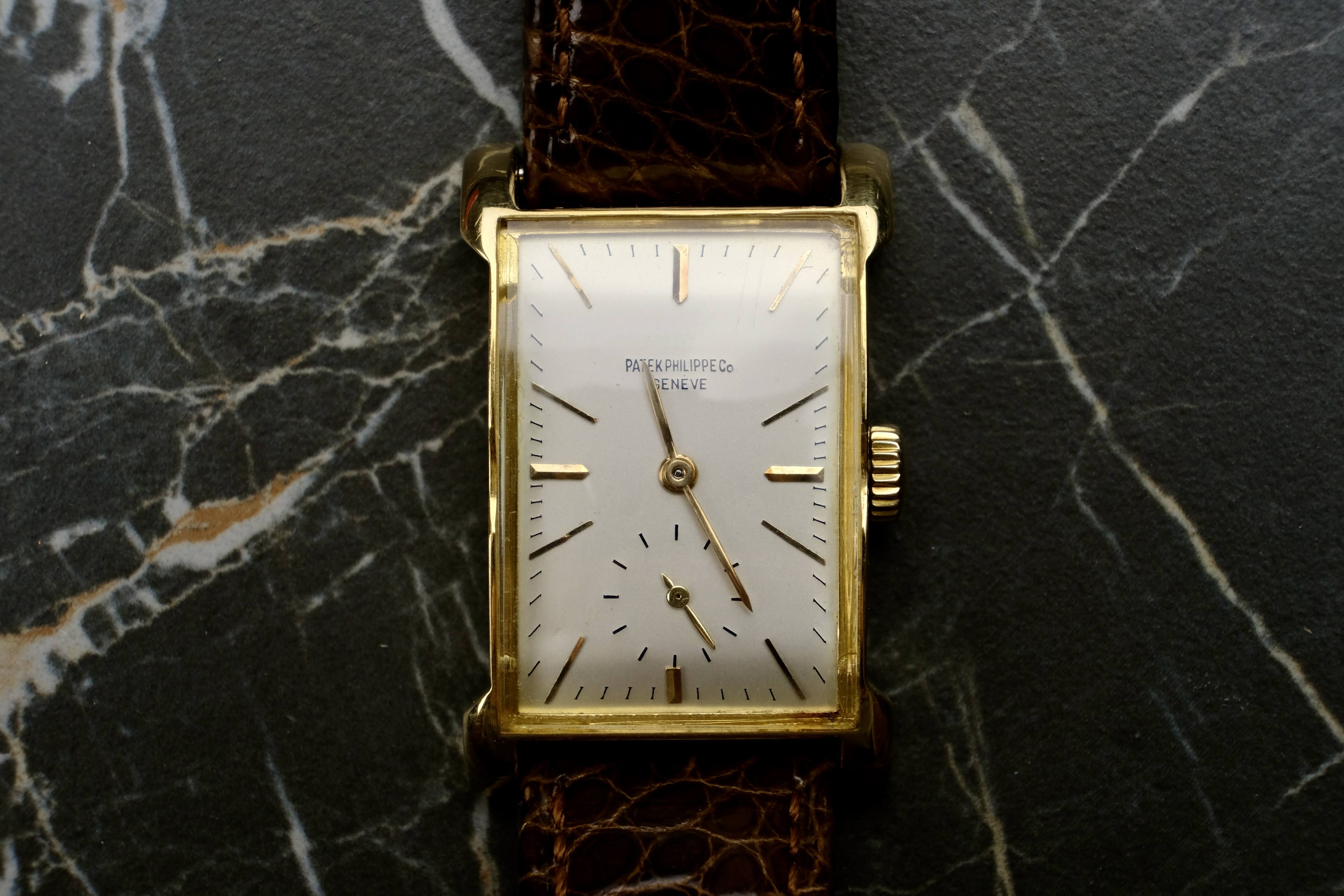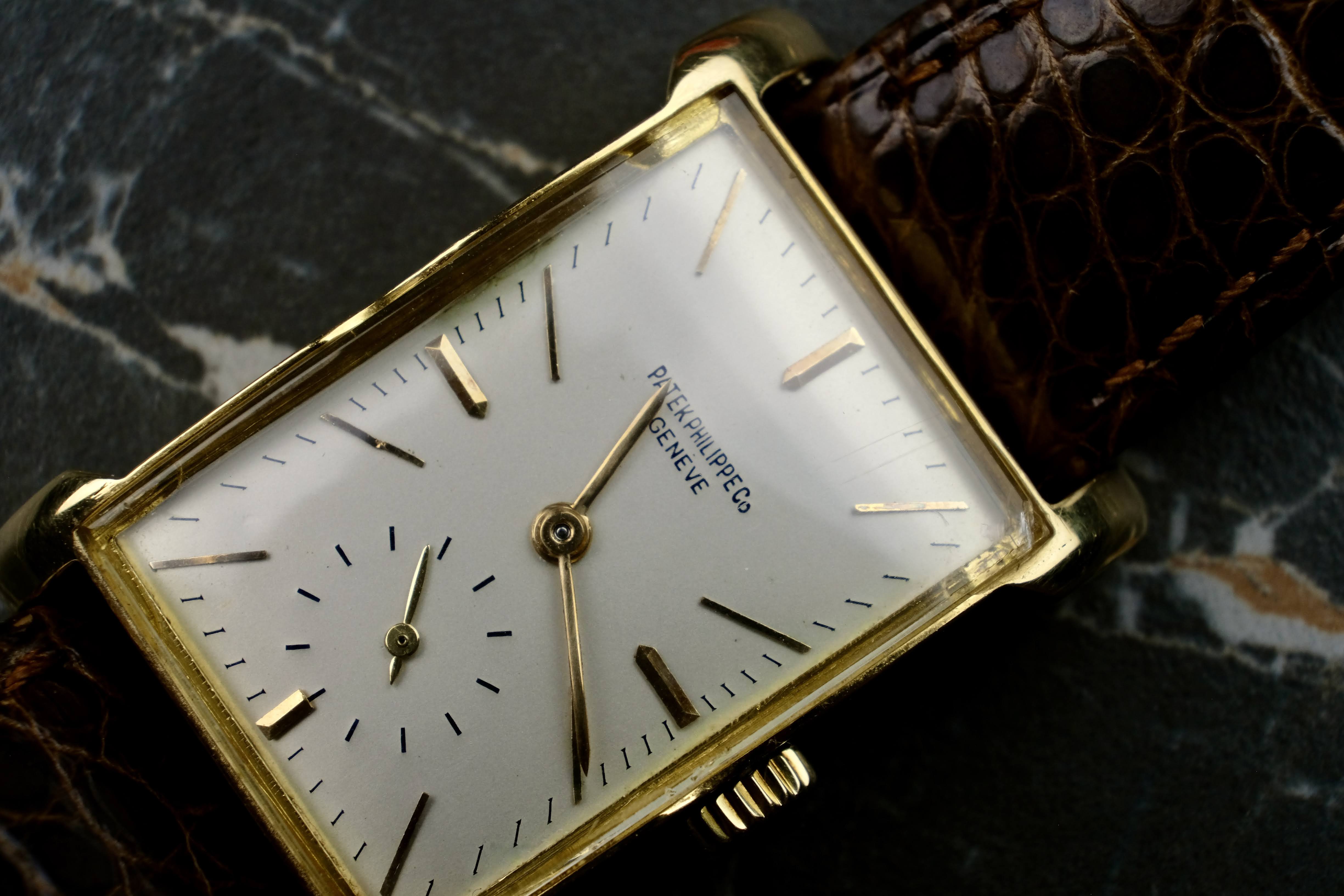 The case is in very nice condition, the hallmarks are very well readable and sharp. The crystal has little scratches, but nothing that falls into the eye hardly. The dial has some little patina and dots here and there, but nothing deep or something that destroys the beauty of the dial. You can see the embossed old Patek Philippe Co Genéve very well and present under the 12 marker. The indices and hands have created a dark and rich patina. The watch carries the original crown. This reference also has the name 'Bunny Lugs' because of the lugs that look like the rear legs of a bunny, which is a little and nice detail. The watch has just been serviced. You will get the watch on a Patek strap with the matching solid gold Patek pin buckle in our travel case.