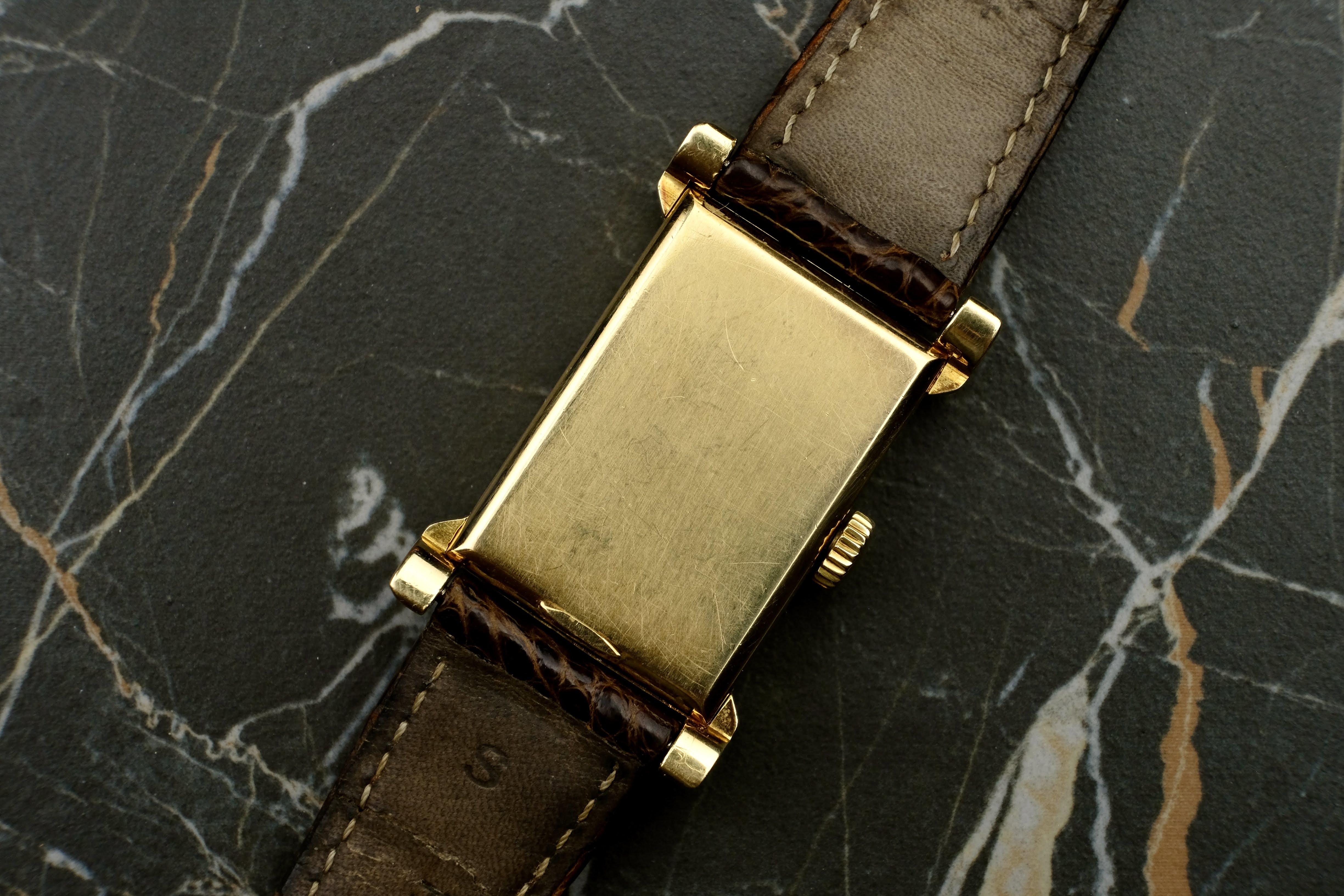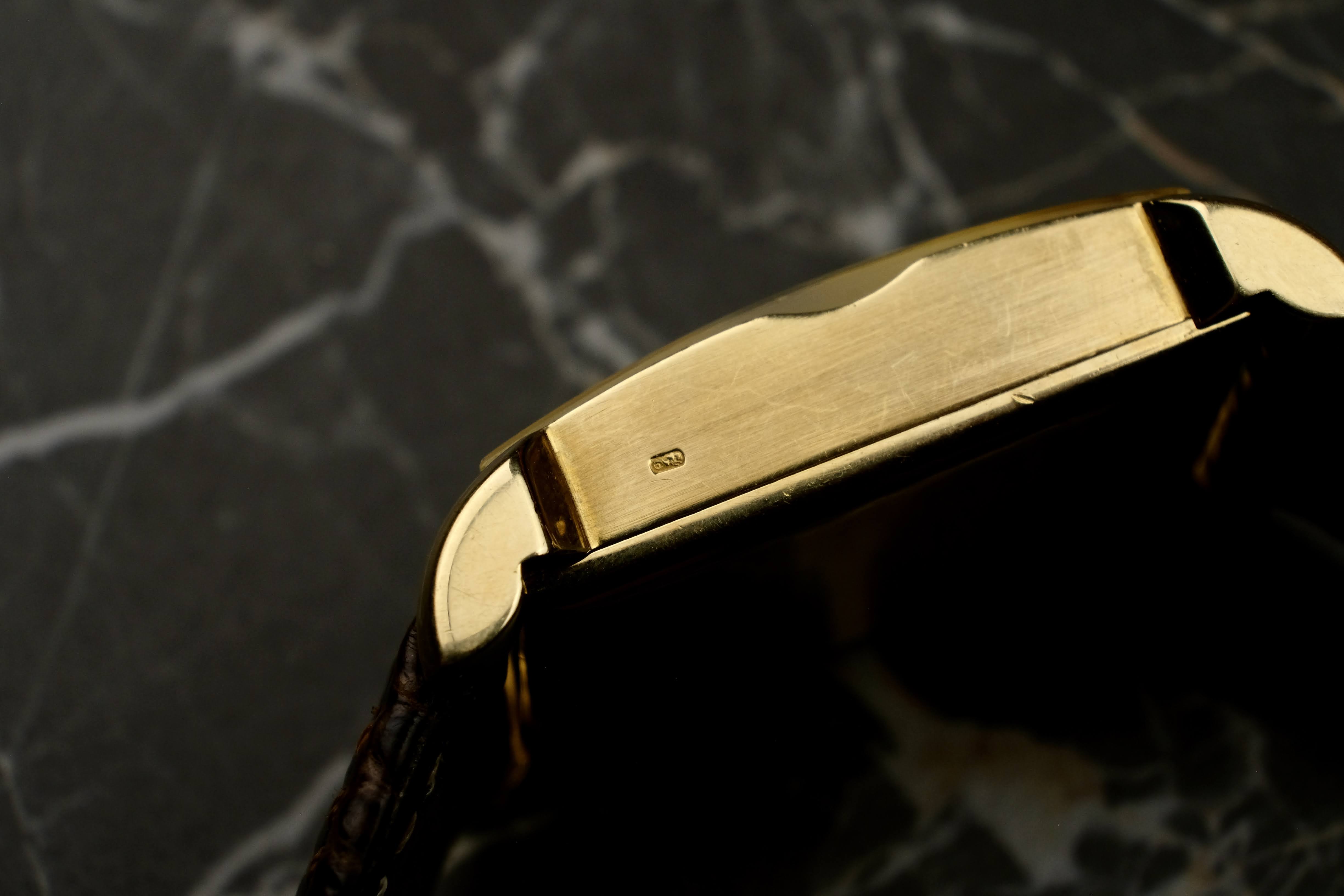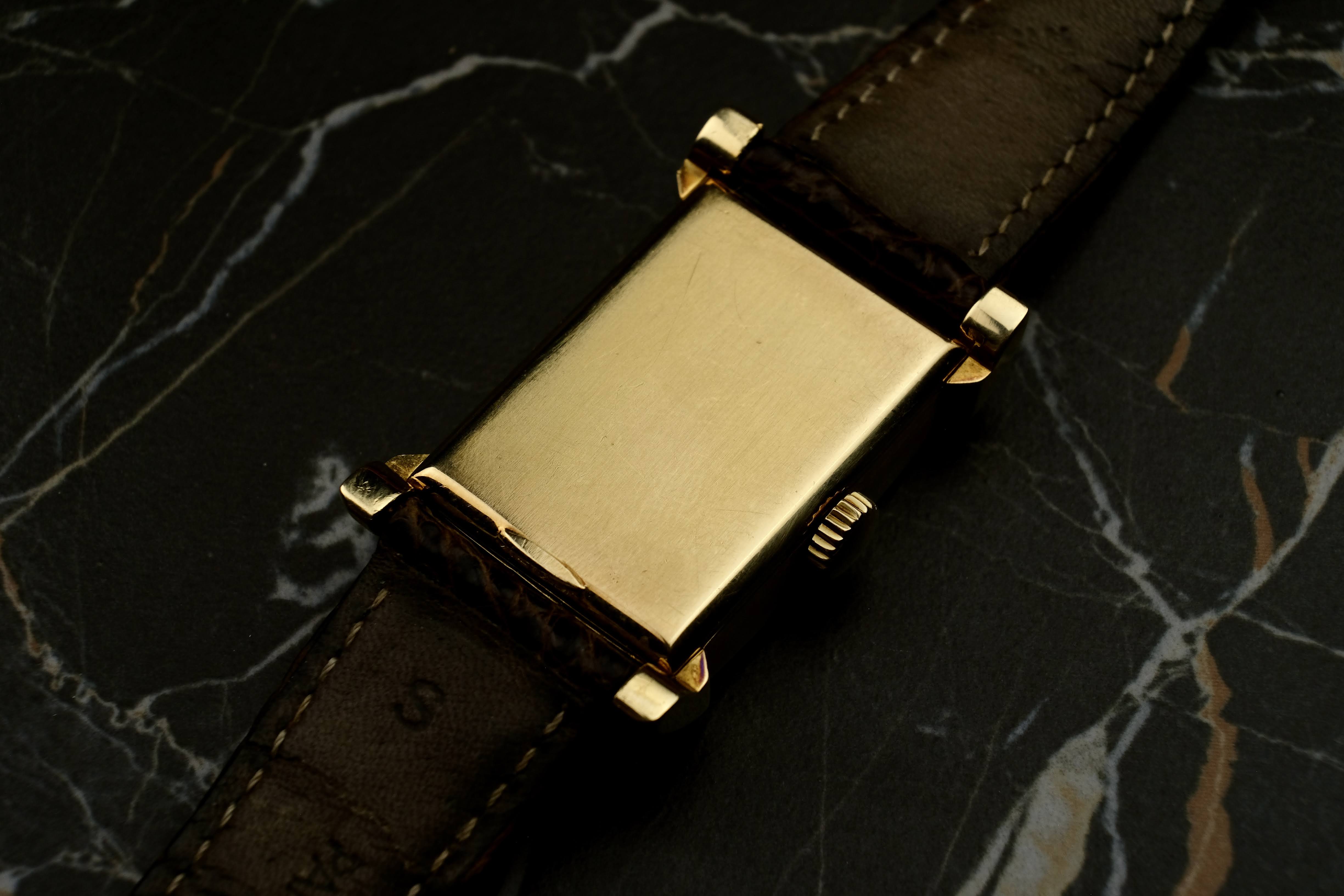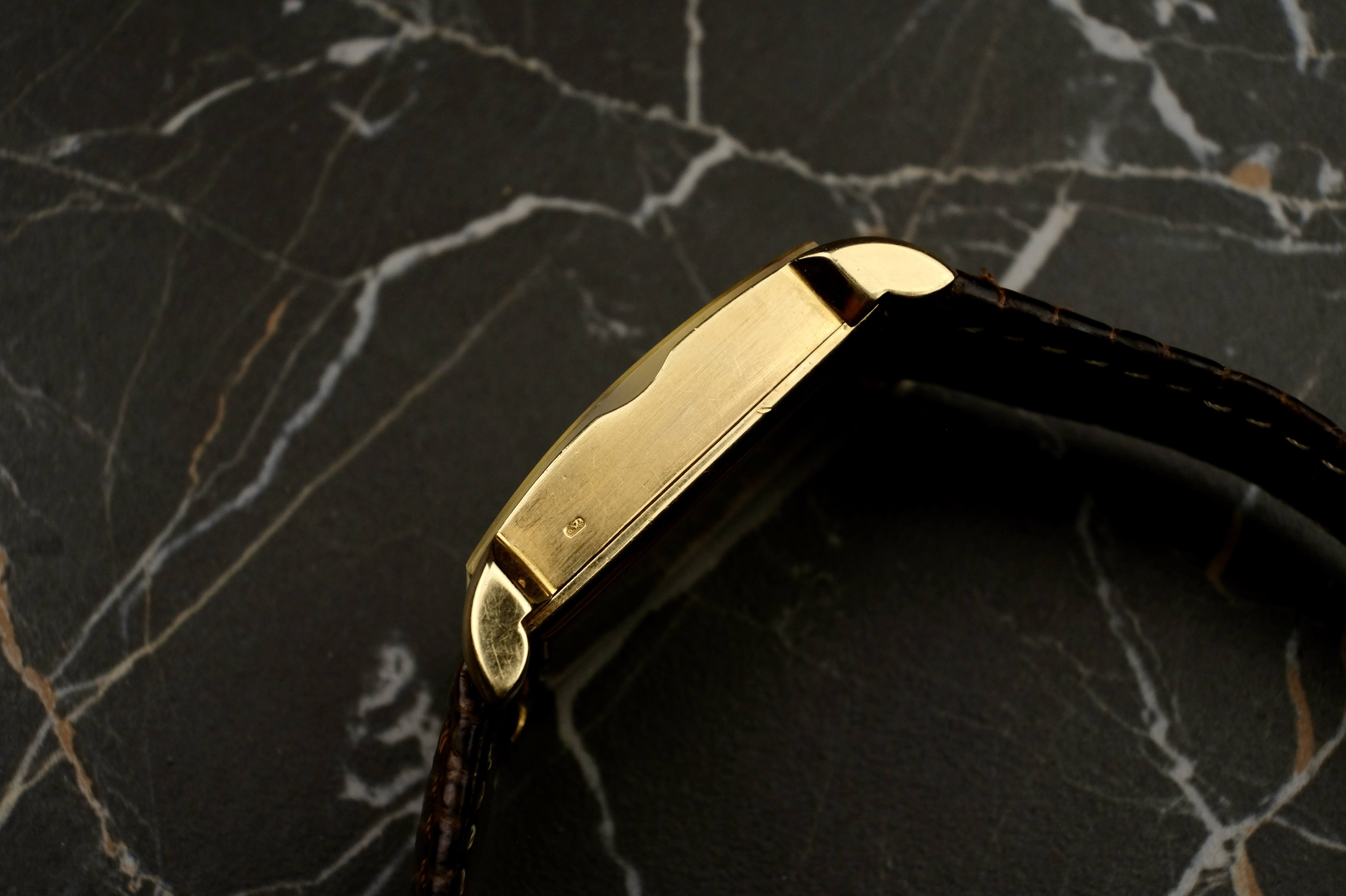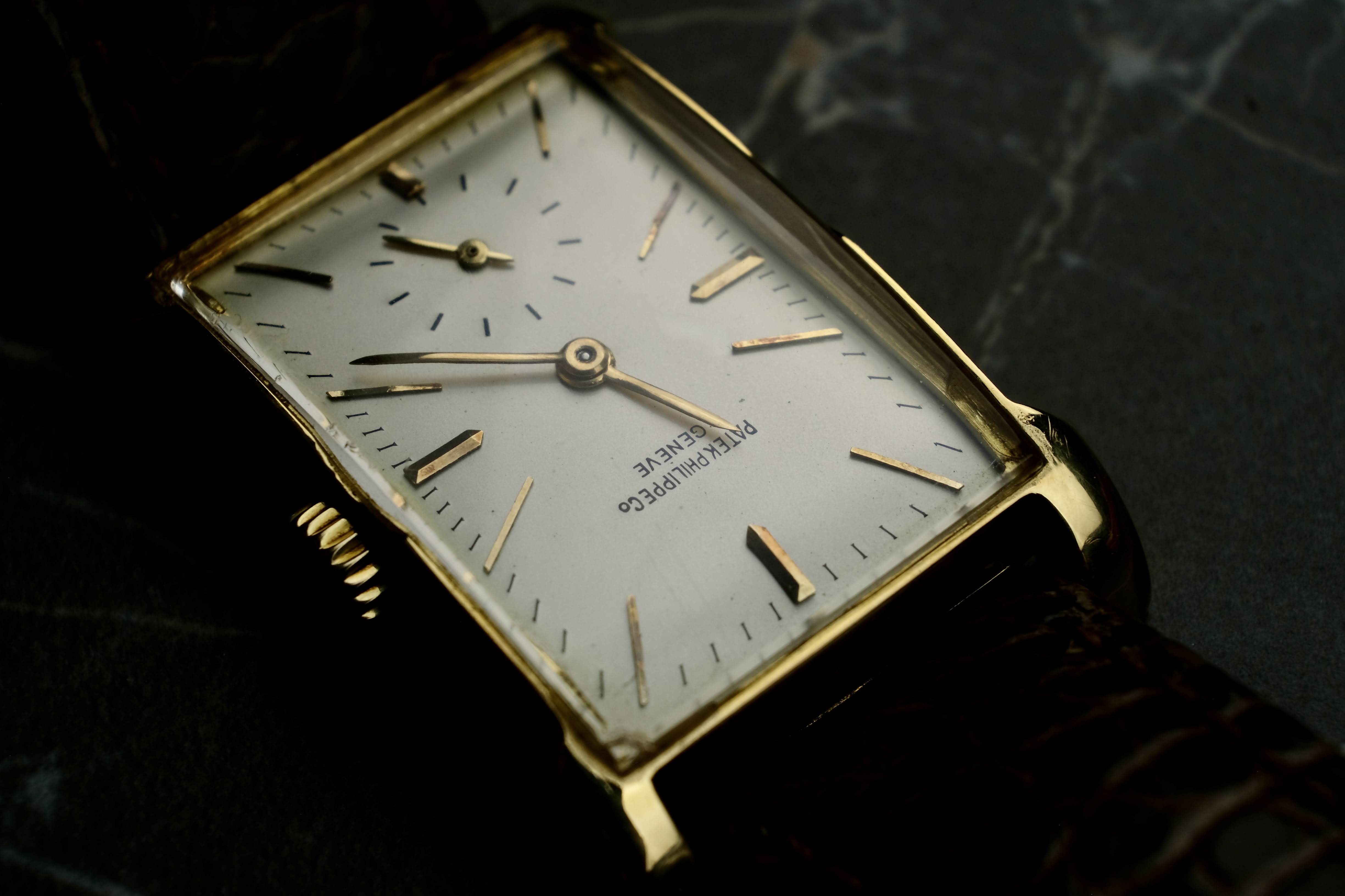 The case is in very nice condition, the hallmarks are very well readable and sharp. The crystal has little scratches, but nothing that falls into the eye hardly. The dial has some little patina and dots here and there, but nothing deep or something that destroys the beauty of the dial. You can see the embossed old Patek Philippe Co Genéve very well and present under the 12 marker. The indices and hands have created a dark and rich patina. The watch carries the original crown. This reference also has the name 'Bunny Lugs' because of the lugs that look like the rear legs of a bunny, which is a little and nice detail. The watch has just been serviced. You will get the watch on a Patek strap with the matching solid gold Patek pin buckle in our travel case.